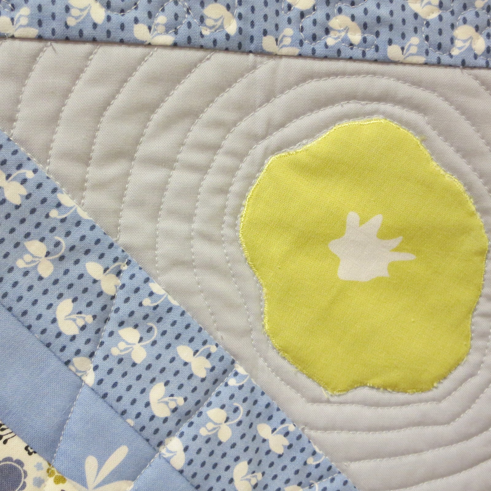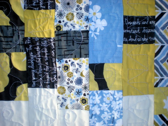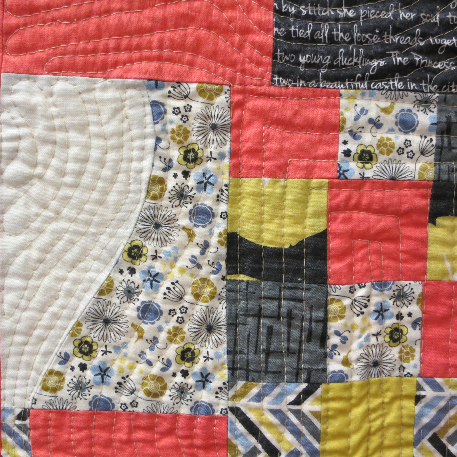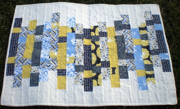 On December 6, 2012, sixteen quilters from the Central Florida chapter of the Modern Quilt Guild, accepted Michael Miller Fabrics’ challenge to make a quilt using fabrics from the “Madrona Road” collection. Quilters received six prints and one solid in the “ocean” colorway. Challenge rules stated: