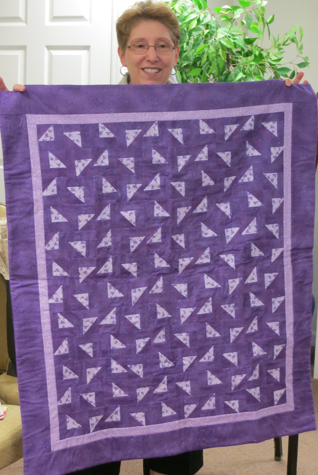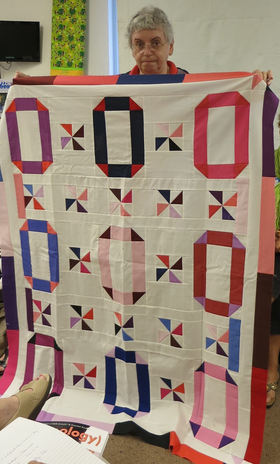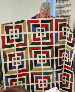 Jill showed her finished Trip-Around-the-World quilt, made according to instructions shared by Sheddy at our March MQG program.