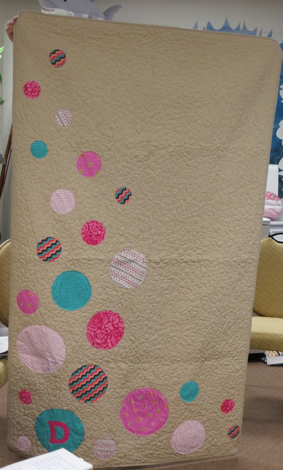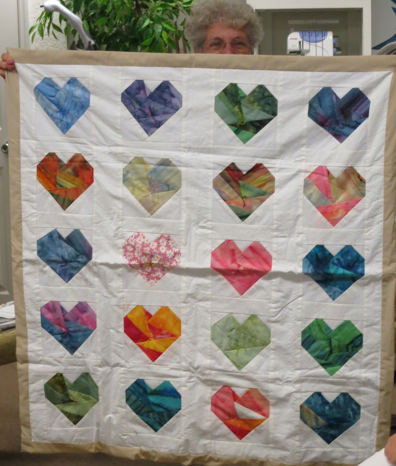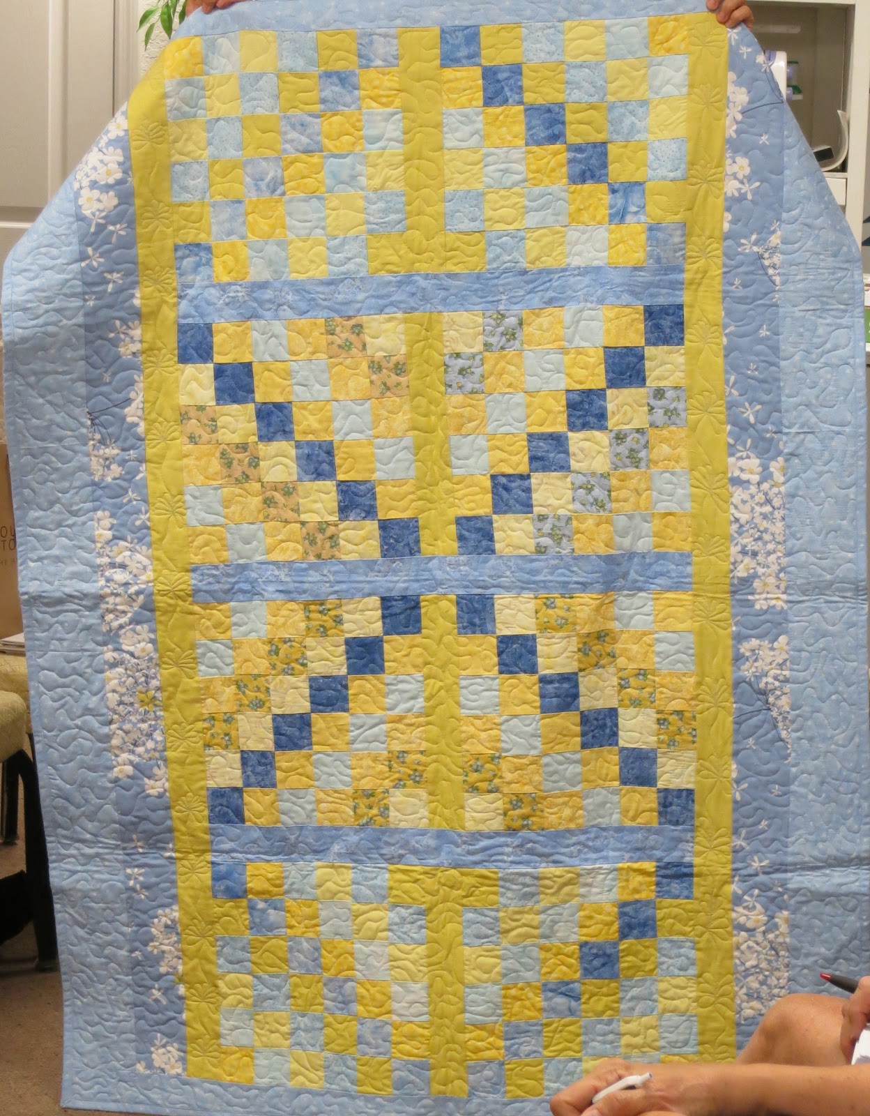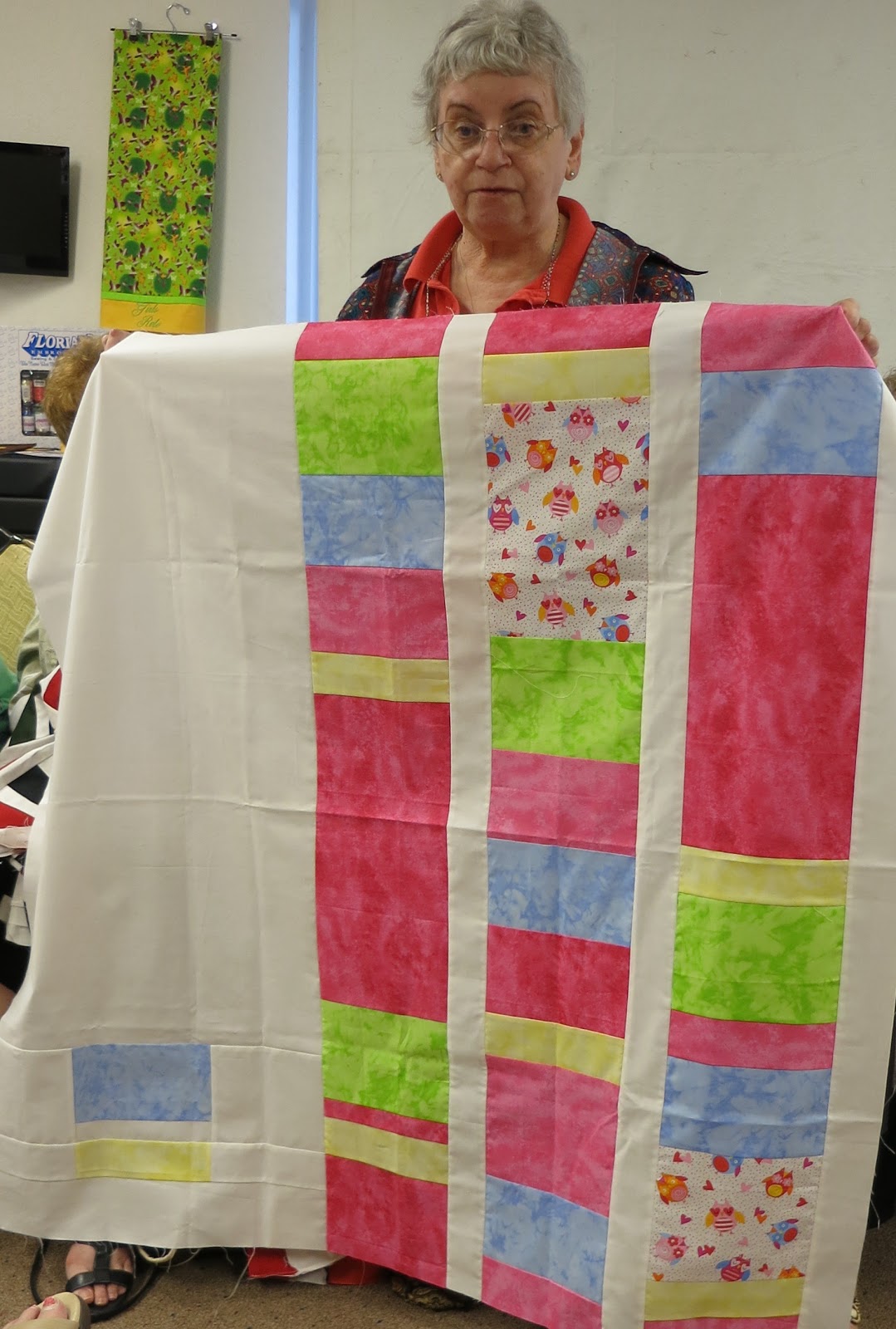 Carol brought three completed projects that will be given this summer as graduation and wedding gifts. The first two are Yellow Brick Road pattern, by Atkinson Designs, the last is a laundry bag.
