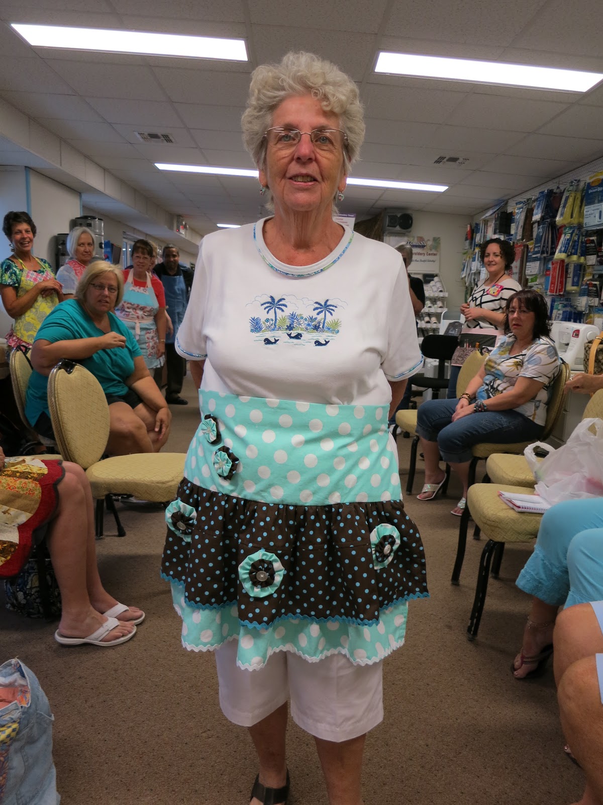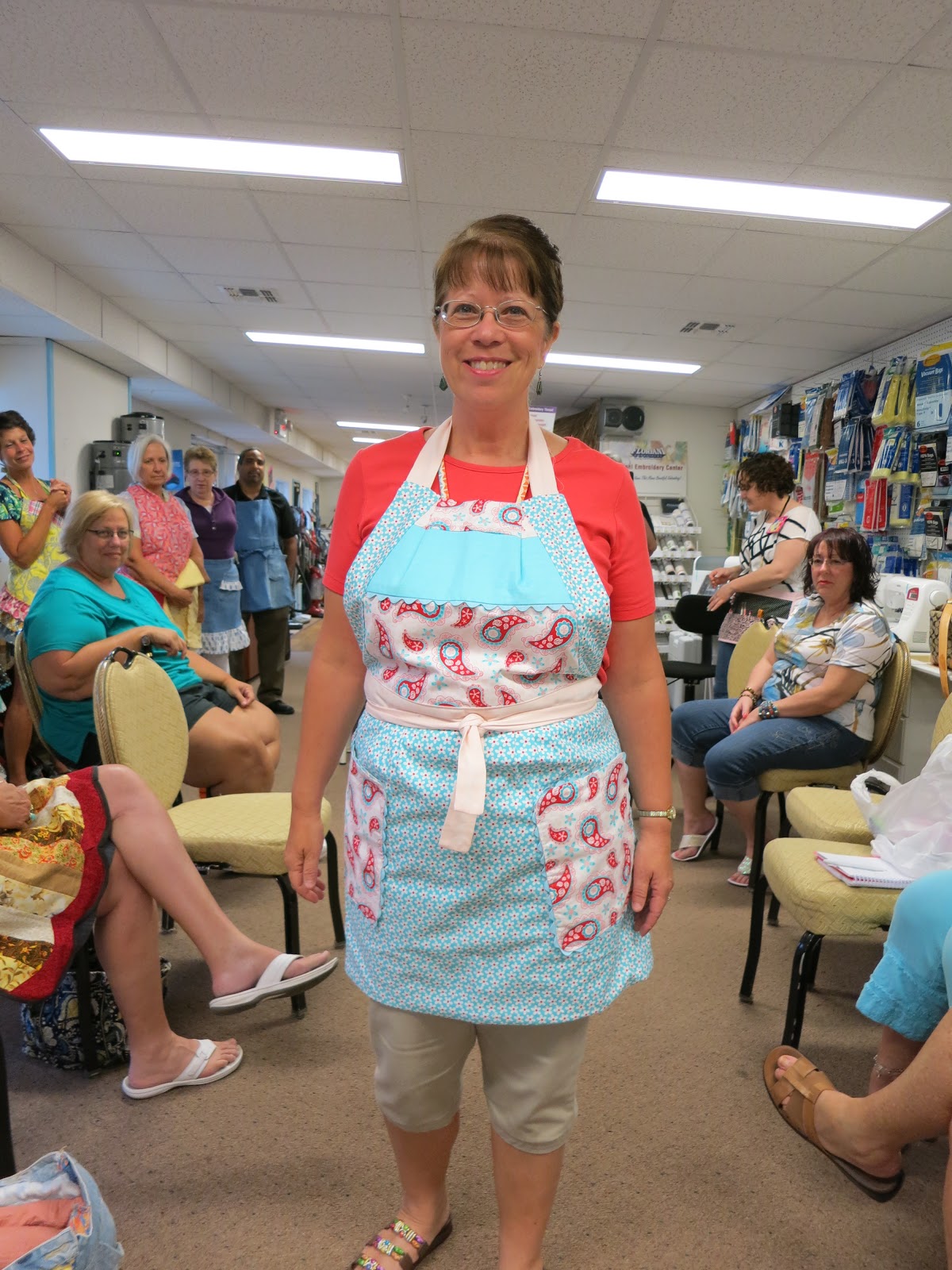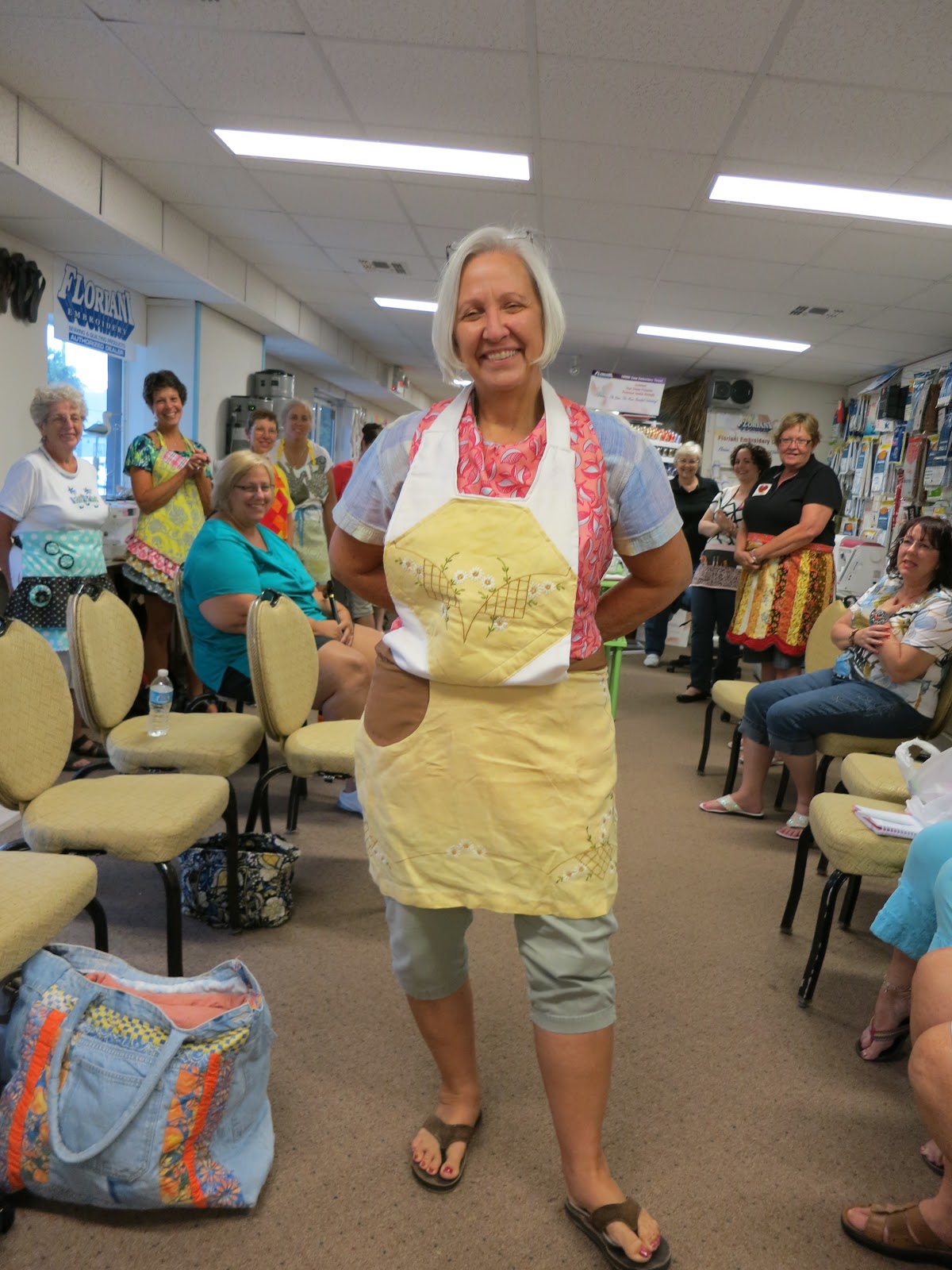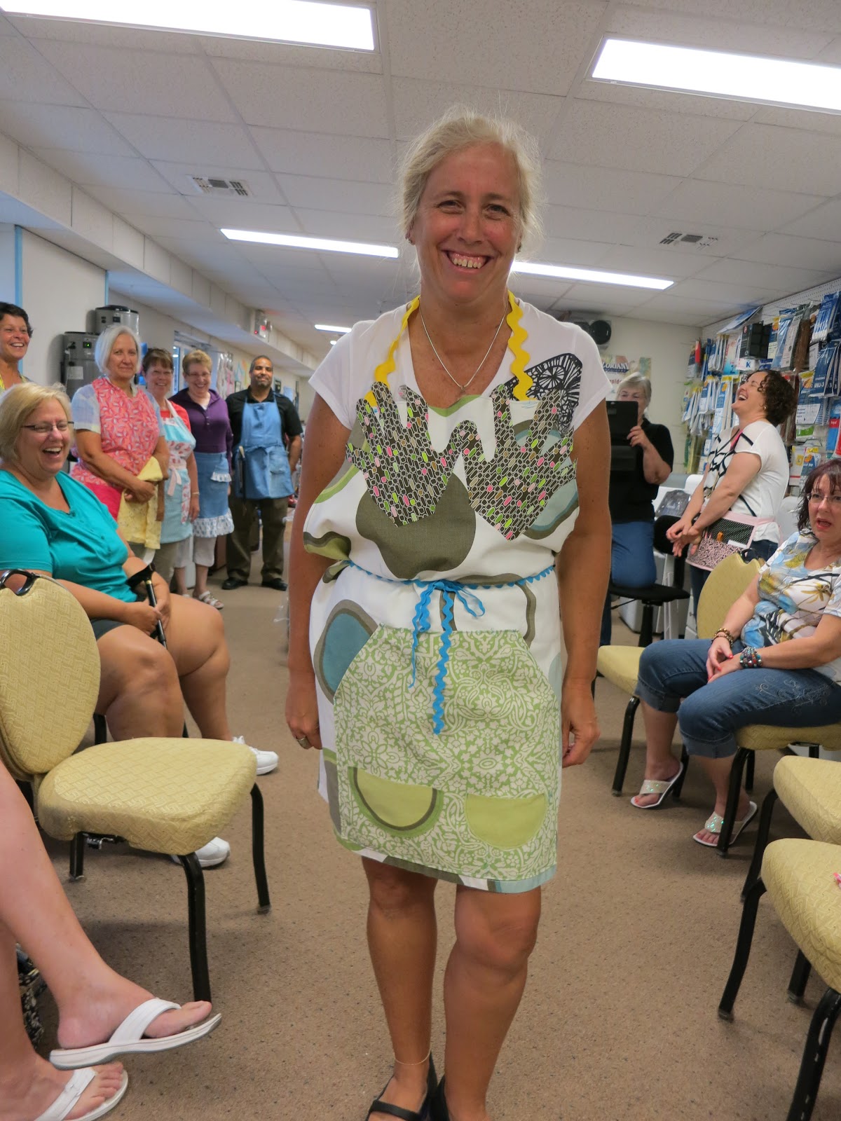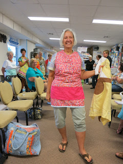Our Apron Runway Challenge was a big success with 10 quilters making aprons… with all sorts of interpretations.