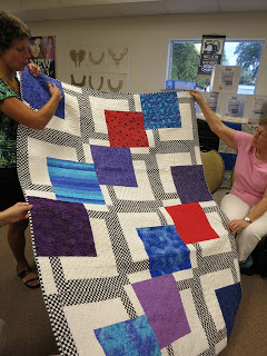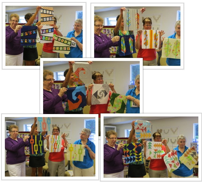 Quilters who are participating in the block-of-the-month being offered by the Bay Area Modern Quilt Guild, showed all their blocks to date. It’s not too late to join in! Just click the links on the right menu bar to go to tutorials for each block.