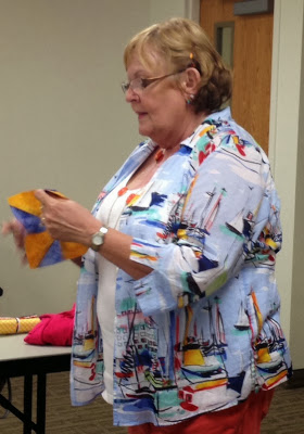 Also distributed to October meeting attendees were various specialty battings for use in the oven or microwave. These were donated to us by The Warm Company. Our quilters are asked to use these battings to sew items for the November 11 “Make a Hottie” challenge. Everyone is invited to participate whether you received batting at the meeting or not.