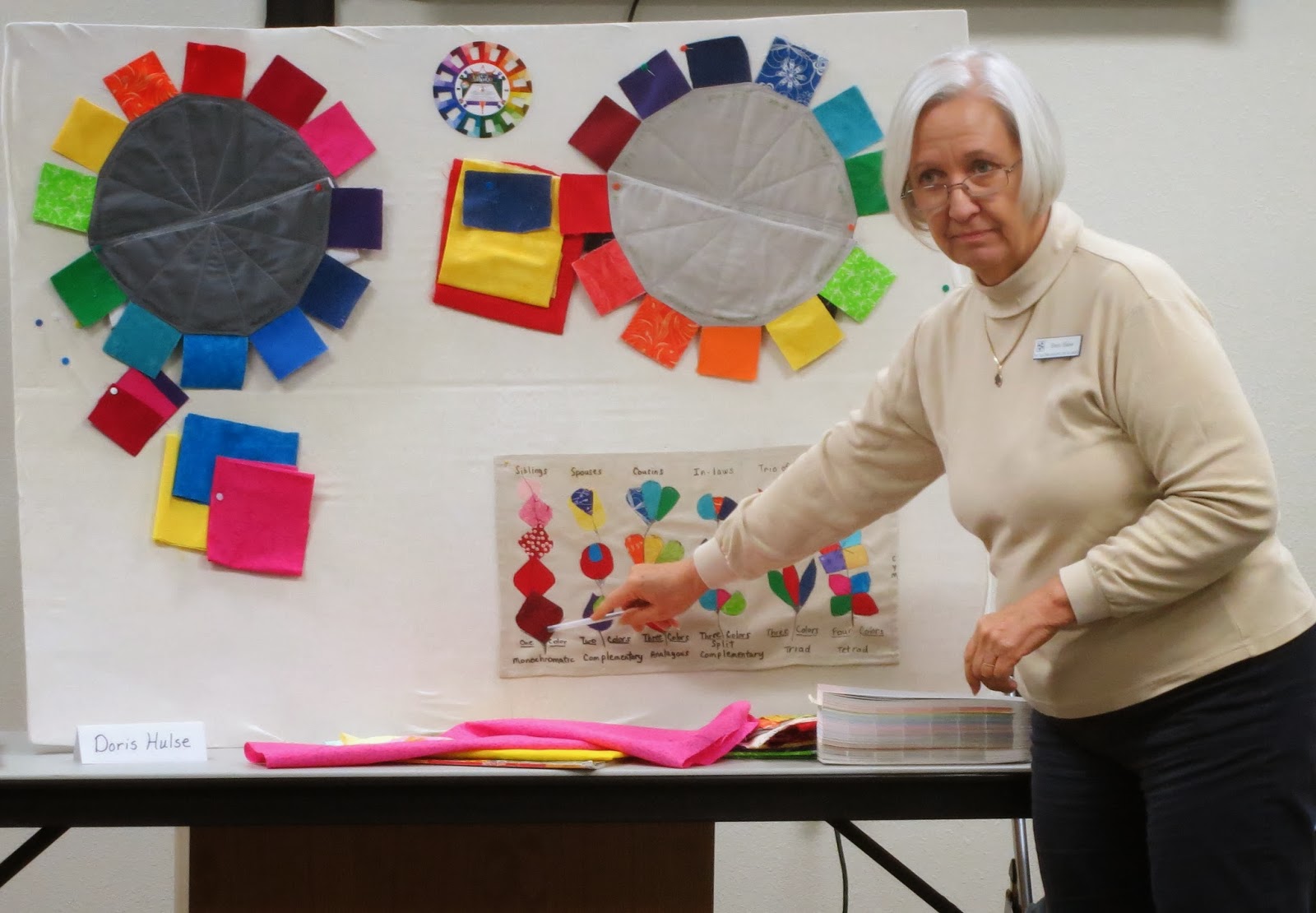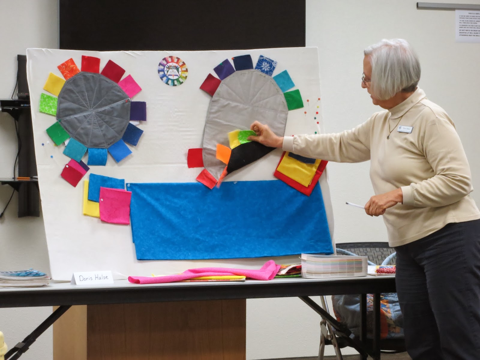 Her homemade color wheels, one in primary “Lego” colors (right) and the other in modern colors (left), were effect tools for teaching us about color, and Doris generously made two additional color wheel sets that were given as door prizes. Thank you for your educational program, and for generously sharing with us, Doris!