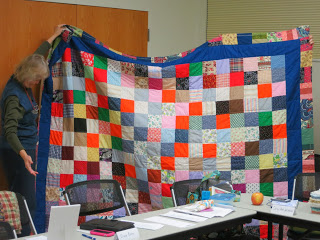 | Carly’s quilt for her dad, ready for machine quilting ideas… which she received! |