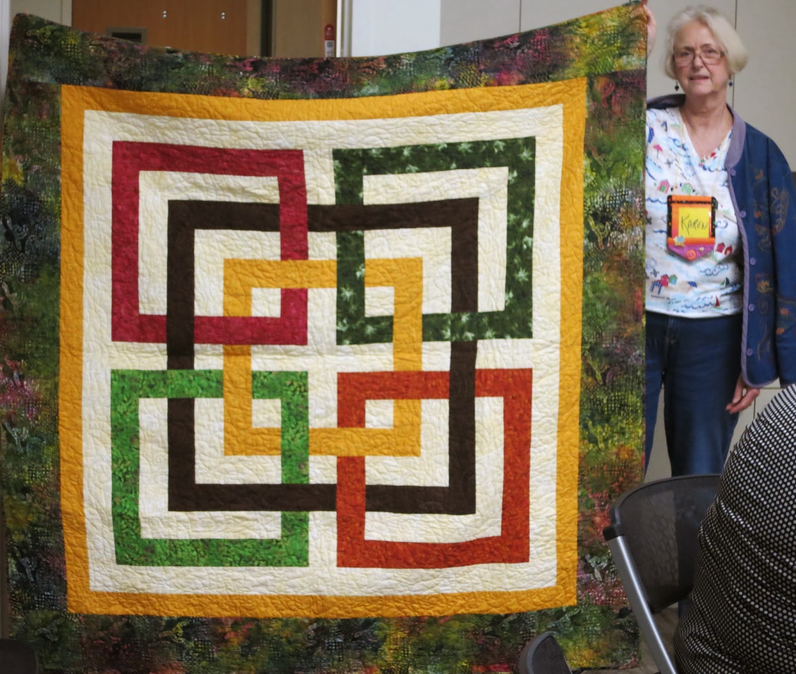 | Karen’s “Joshua’s Knot” quilt for her grandson |