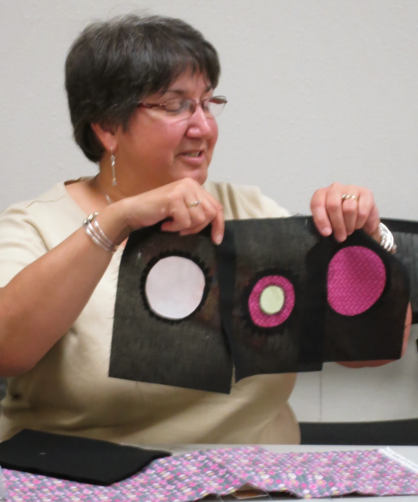 | Lynda’s circle’s, sewn after seeing last month’s program |