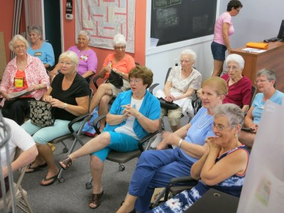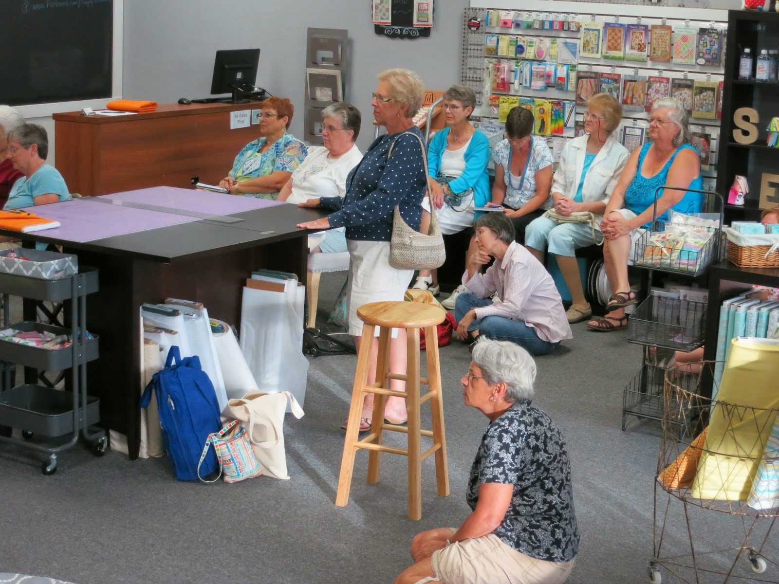The short meeting concluded with demonstrations of an Accuquilt, and Piping Hot Binding tool by shop owner Kathy Creach. Thank you for hosting us, Kathy and Kelsey! Simply Sew Boutique