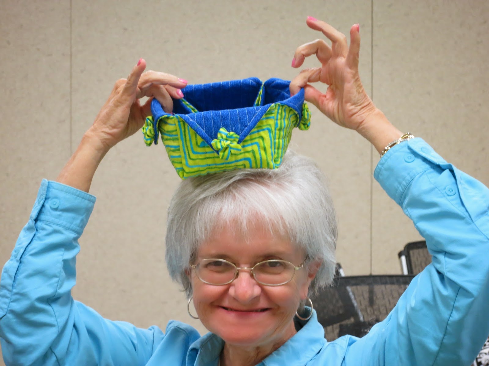 | Doris showing one of two place mats |