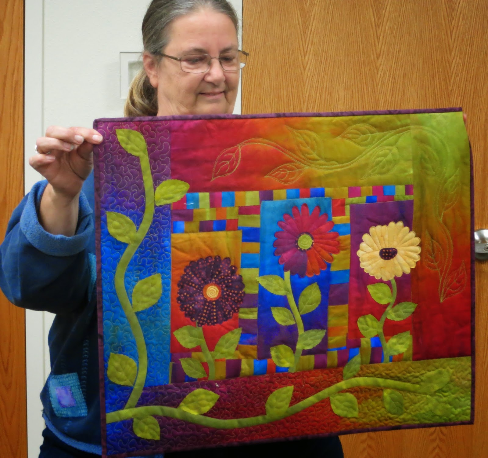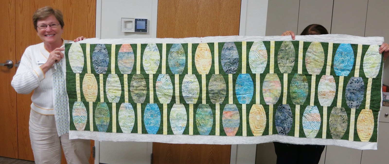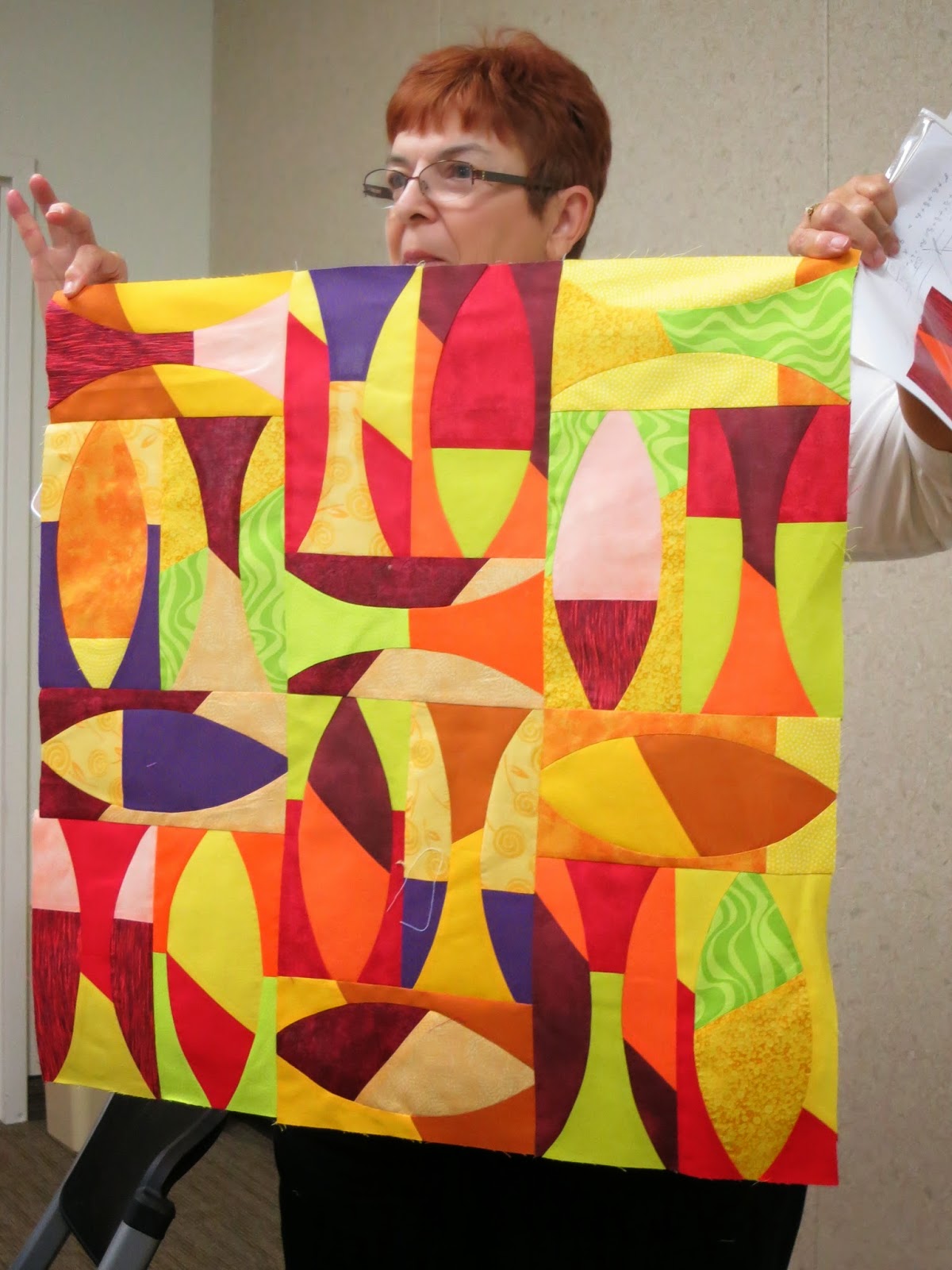 Twenty-five quilters turned out for the November 10 meeting! The evening’s highlight was formally announcing that our chapter is structuring – we have filled officer and committee positions for 2015 (see previous blog post)! Volunteers who were in attendance were introduced. So we can continue to get to know one another better, as photos of of officers and committee members volunteers are taken, they will be posted to the Chapter Leaders page (see tab above).