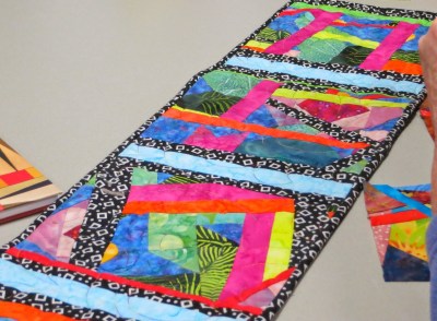 | Debbie shared an improv table runner she made in a class with Victoria Finlay Wolfe. |