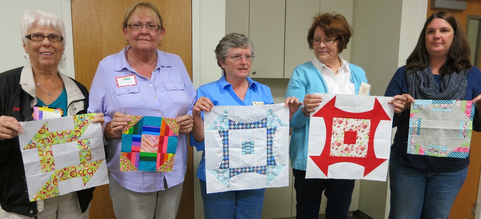| L-R: Bette, Brenda, Frances, Susan and Jodi show their modern versions of the Churn Dash block. |