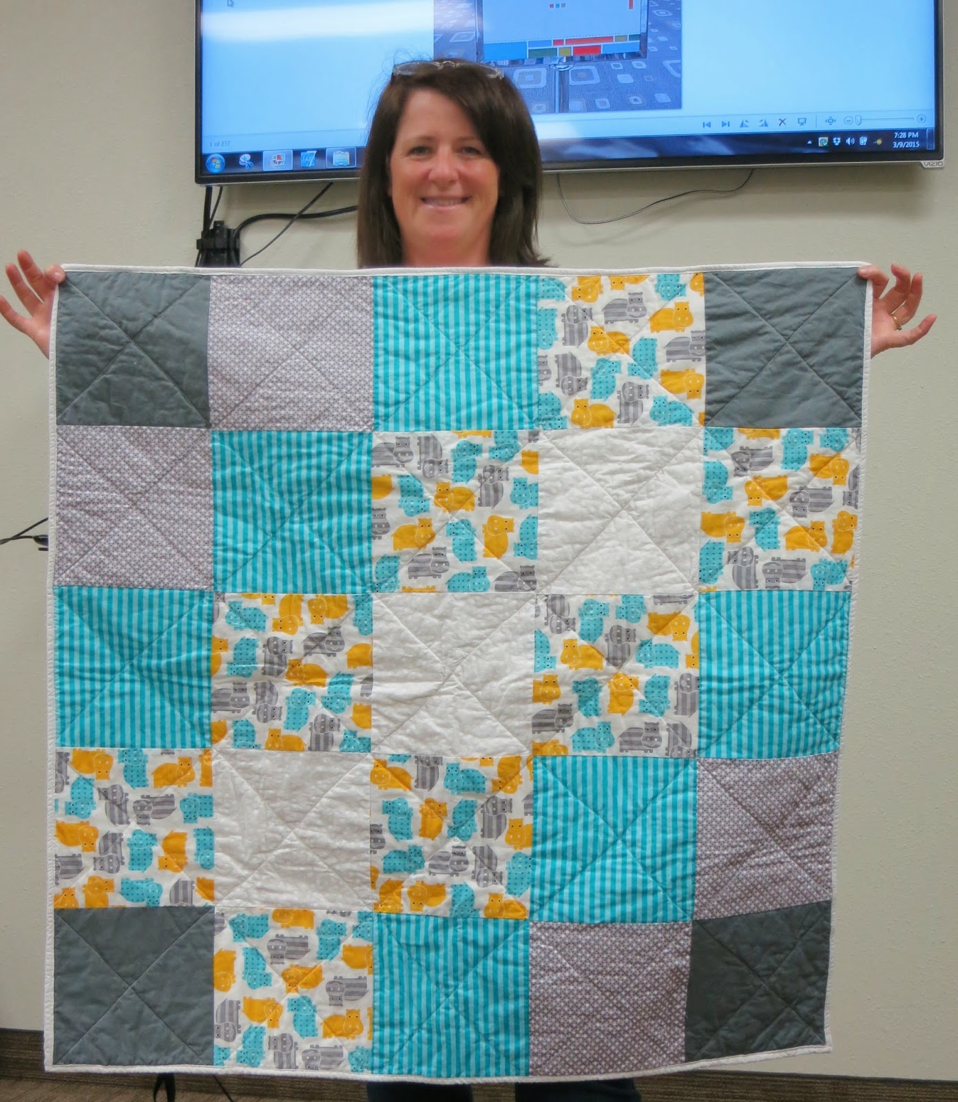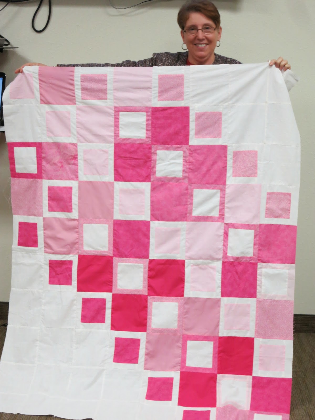 | Jodie and her plus pattern quilt, as seen on Pinterest |
