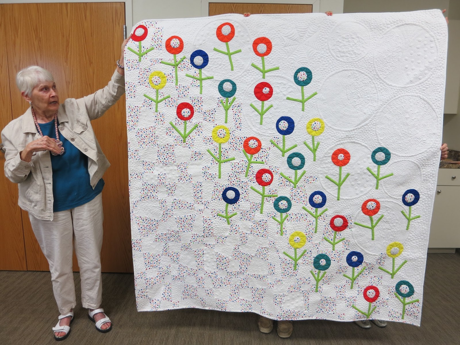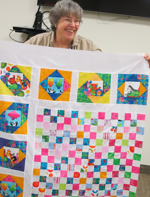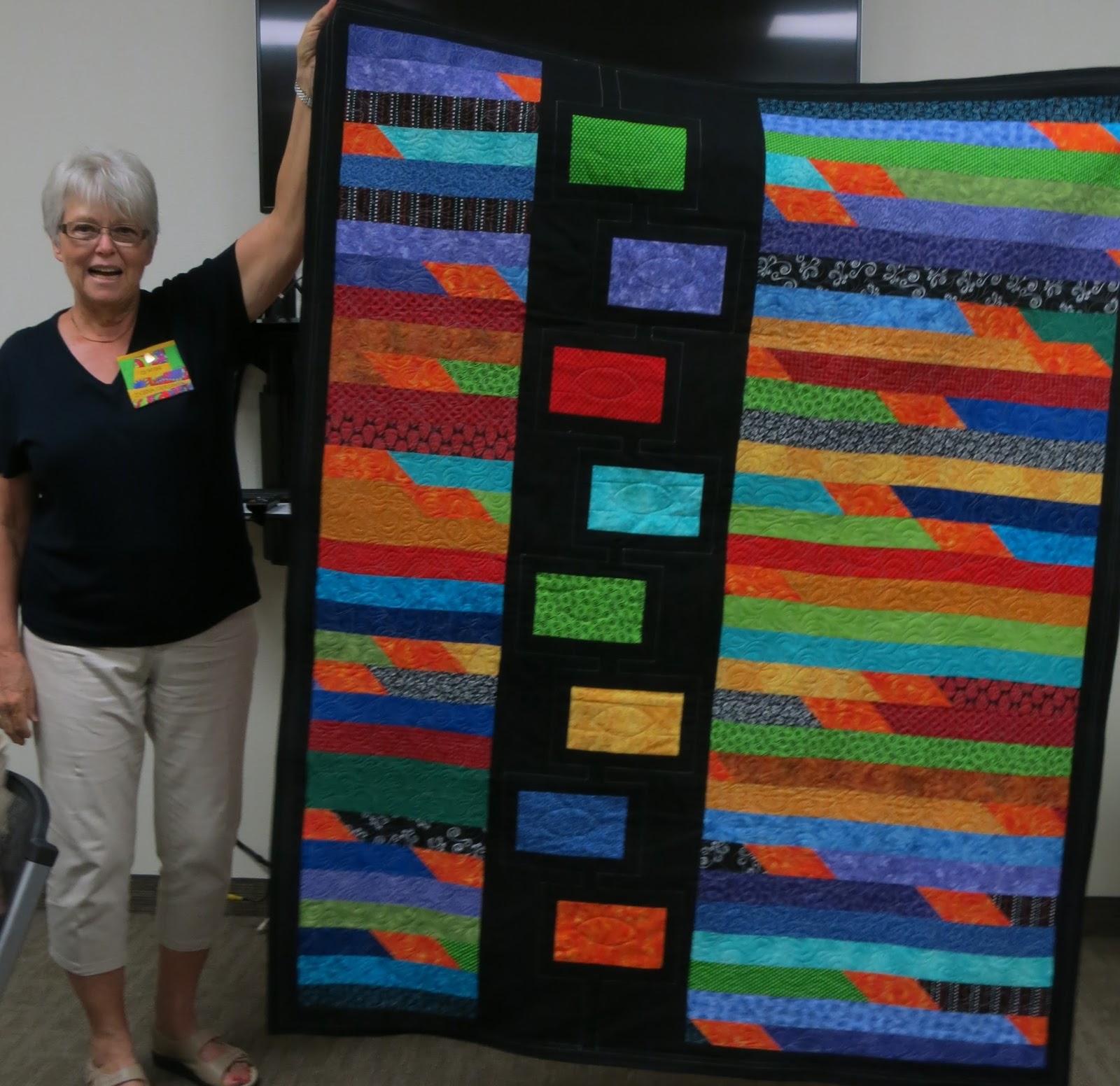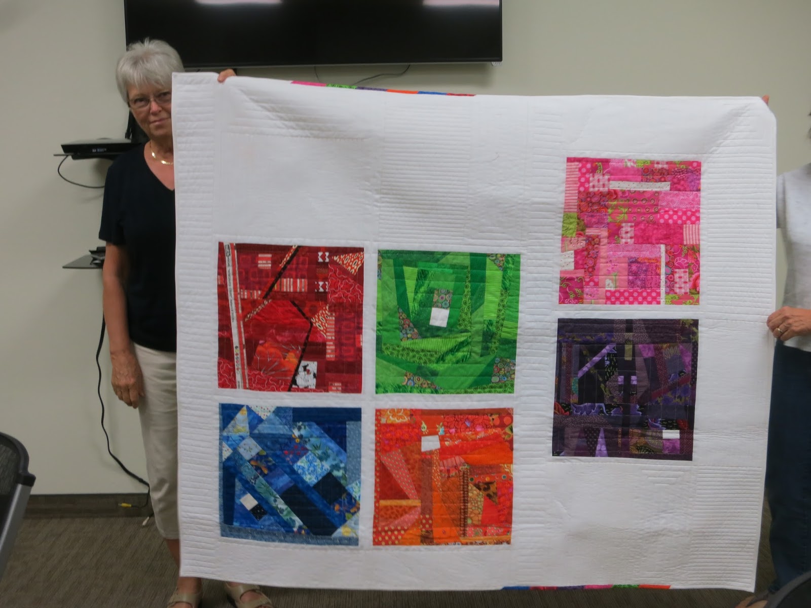 Wow! Looks like I missed a great meeting. What wonderful modern quilt designs and great machine quilting too. Love seeing those bright modern quilts. Beth
