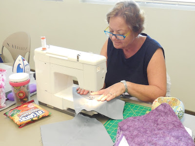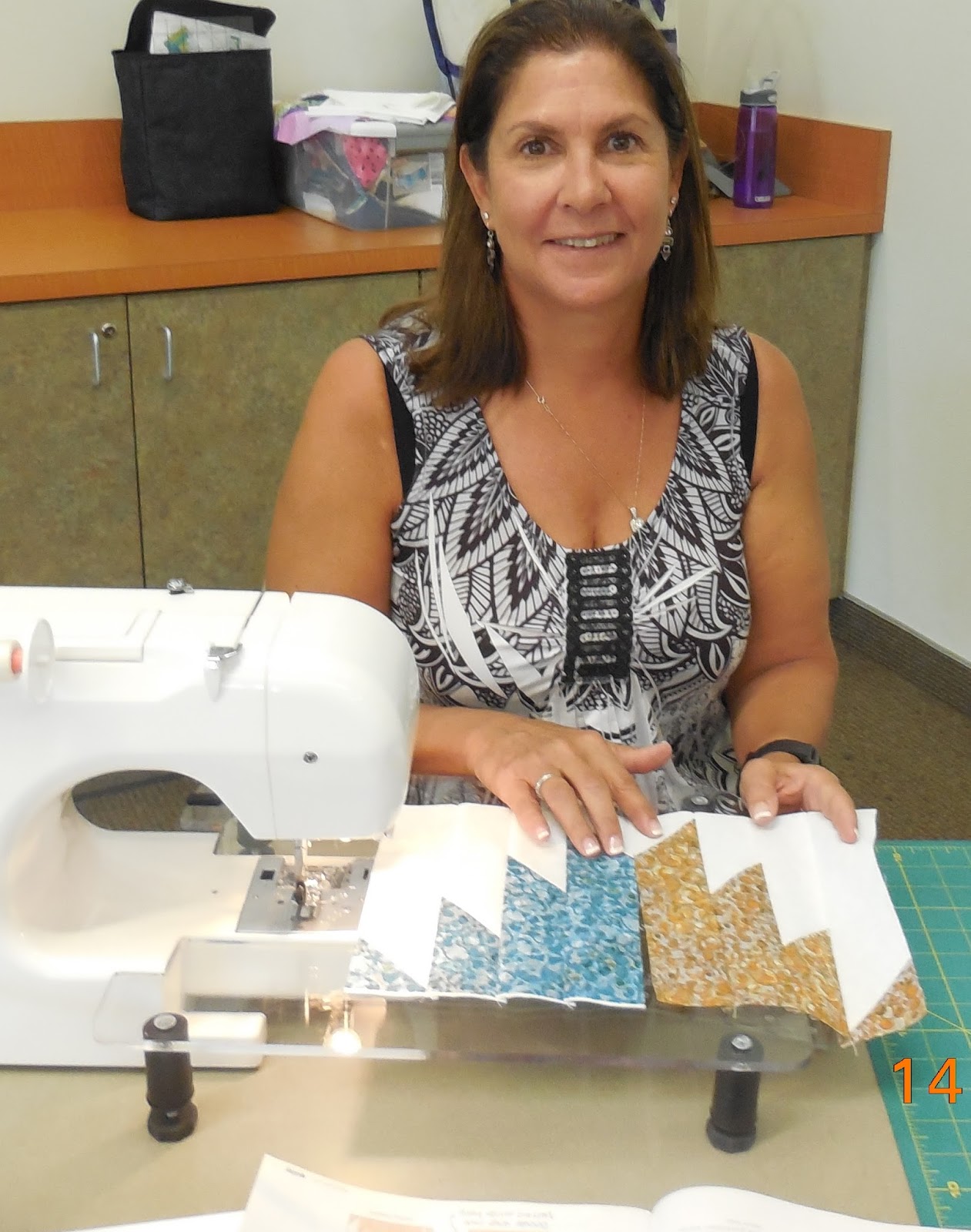 Several members worked on Delectable Mountain blocks for our North Lake Presbyterian Church donation quilt.