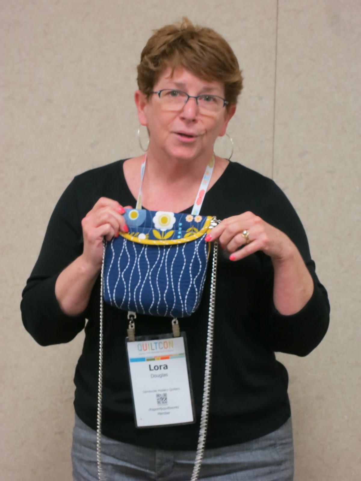 | Lora also showed her “Roxie Bag,” another of her own designs. |