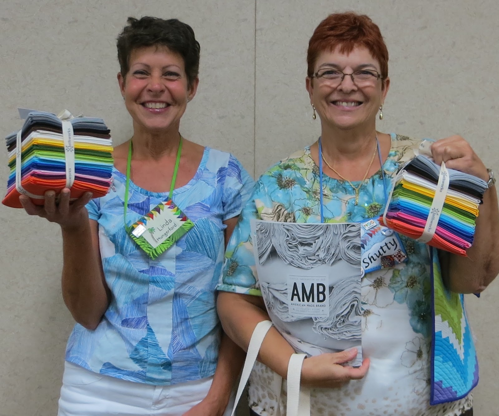 | They won the same prizes – a 31 fat quarter bundle of AMB solids, an AMB color card, and an AMB tote bag. |