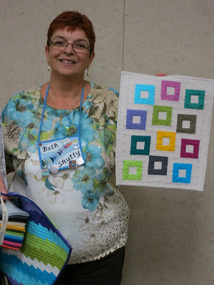 | In addition, Beth’s off-set squares quilt was also selected by AMB to be part of the 40-quilt display! |