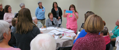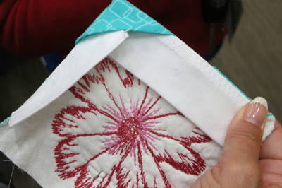 Our program was demonstrations of both flanged binding and faced binding. Karen demonstrated flanged binding with step-by-step samples, and provided a hand-out so everyone can give this method a try.