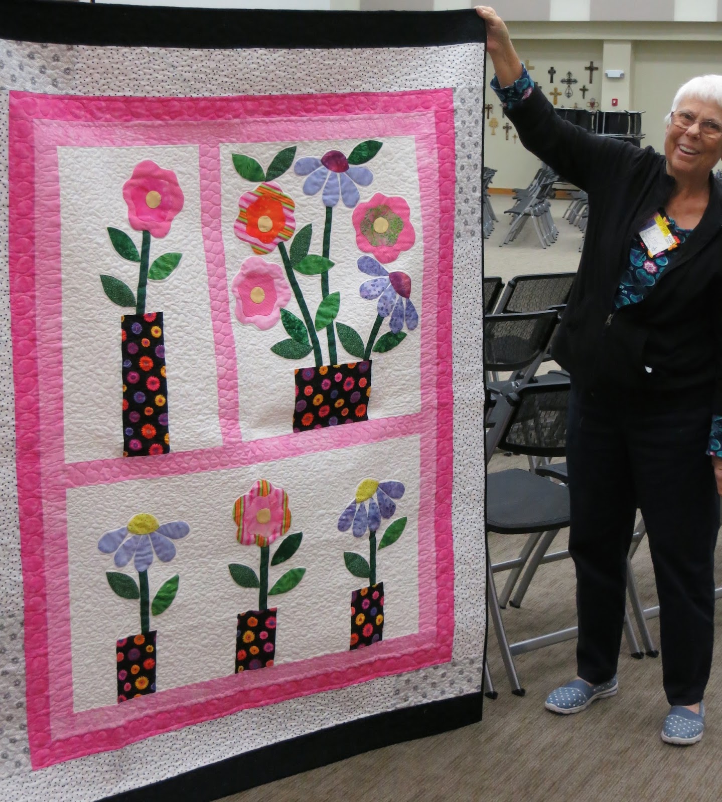| Bette with “Avery’s Garden,” made for her granddaughter, and quilted herself. |