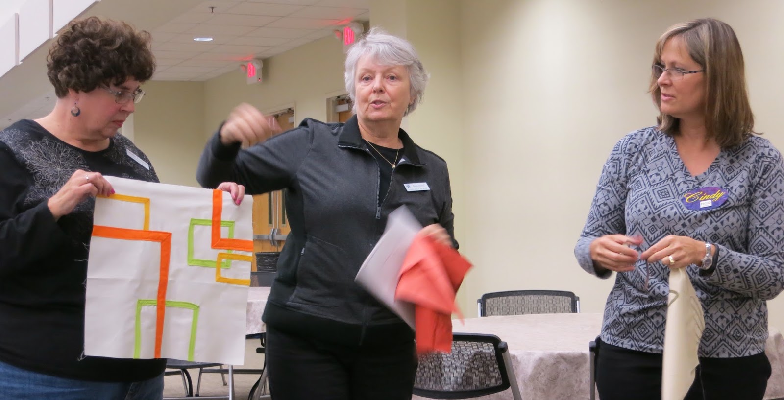 Thirty-one Central Florida MQG members are participating in the Mighty Lucky Quilting Club during 2016. Members Lynette, Ruth, and Cindy shared some of their bias tape/appliqué test pieces.