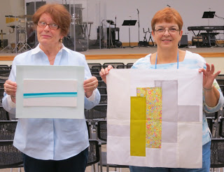 It was a good exercise. And if desired, each quilter can actually sew her piece into a mug rug or hot pad.