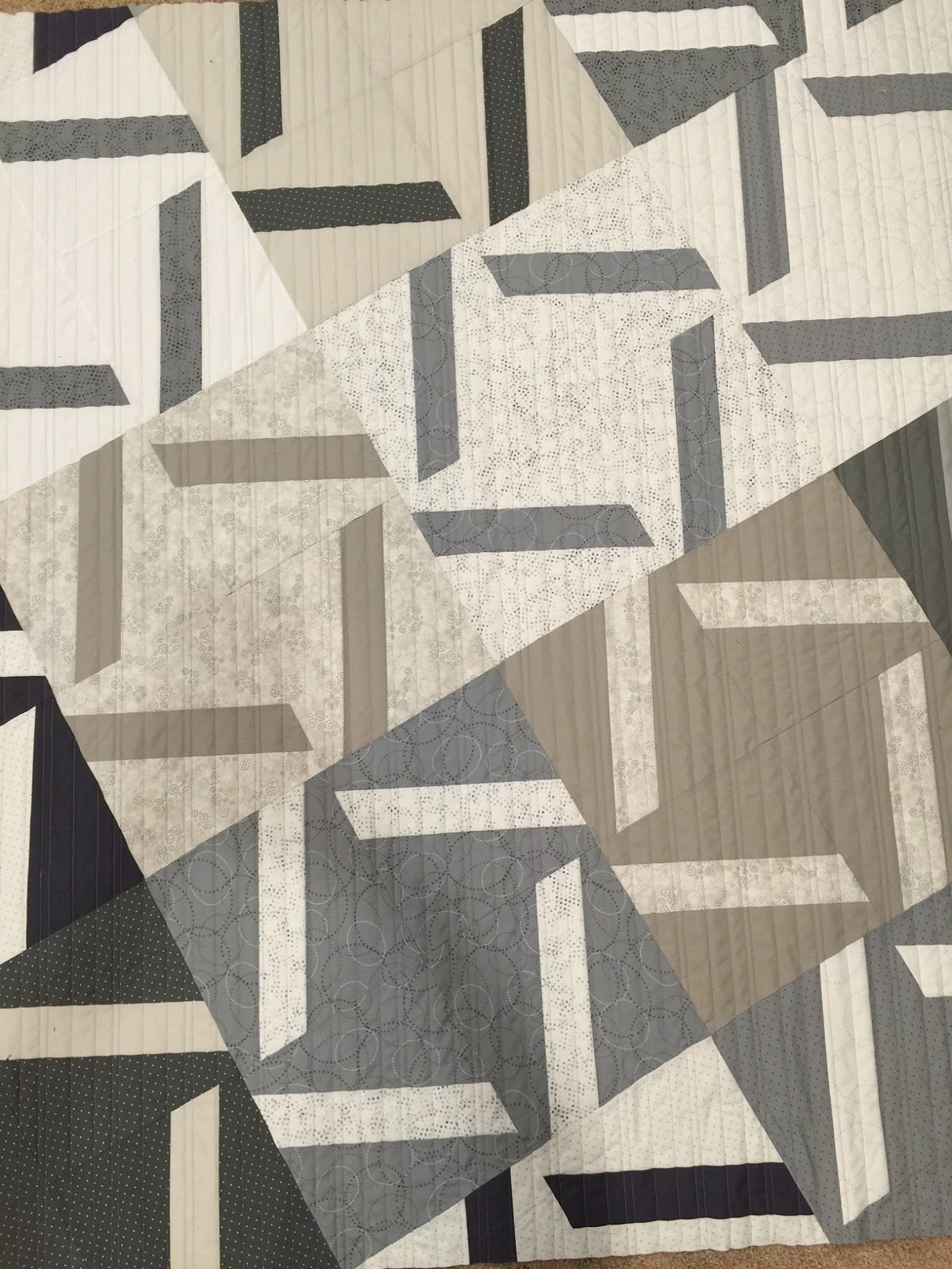 Another new member, Monique, shares her 30″ X 30″ “Modern Logs” quilt.