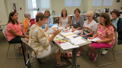 Our happy retreaters were, from top left: Laura, Debbie, Diane, Jamie, Judi, Cindy, Kathy, Kelly, and Lynne; and from bottom left: Monique, Mel, Janice (Momasita), Karen E., Linda T., Dee, Karen T., Jill, Carol, Sue, Lora, and Linda H.