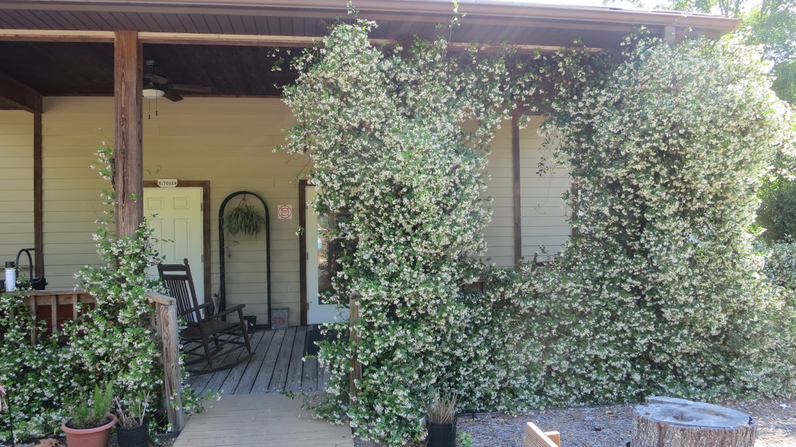 At the entrance to our sewing room, the jasmine was in glorious bloom, giving a lovely scent to the air… appreciated mostly by those of us without allergies!