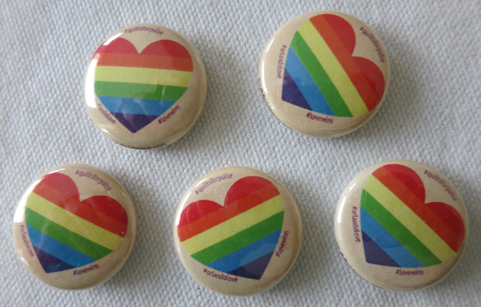 Any member participating in making blocks, or contributing in any way to the QuiltsforPulse project, receives a pin for their name tag. Pins were designed and donated to our chapter by Allison Schnackenberg, a member of the South Florida MQG.