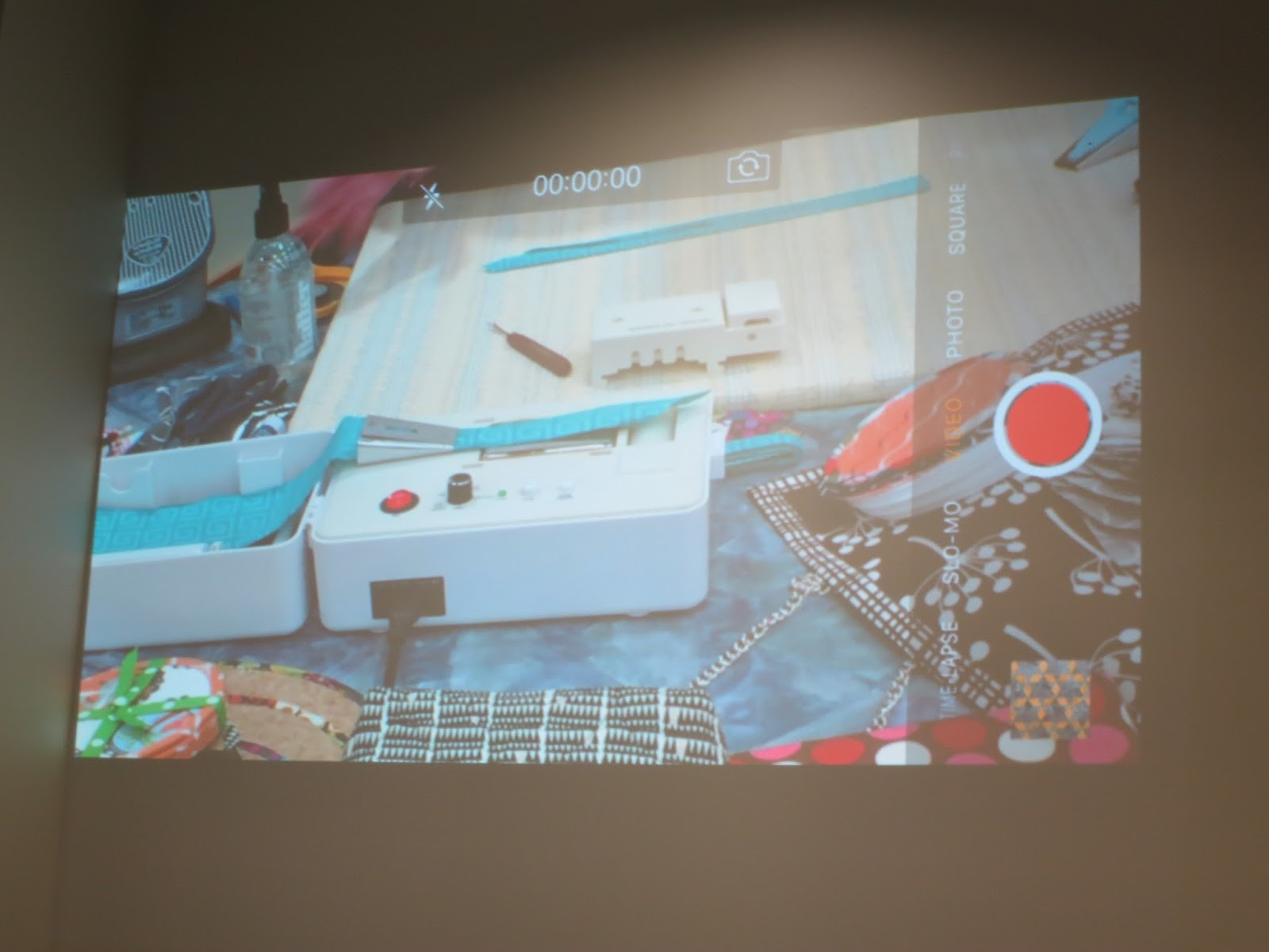 Her on-the-wall projection allowed everyone to better see what she was doing at the cutting table and sewing machine.