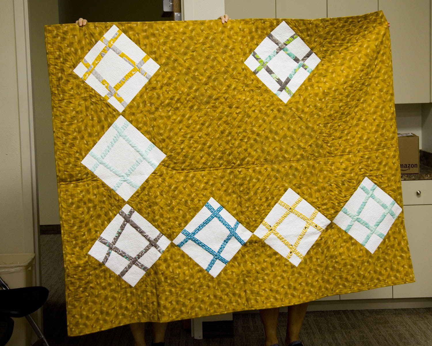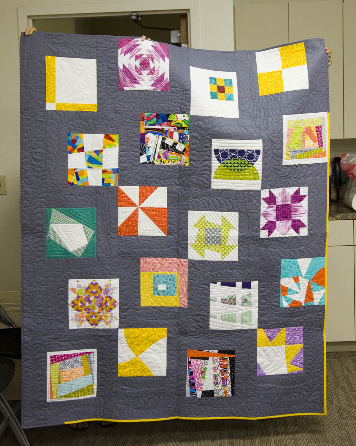 Several quilts were put together from the blocks that we made using traditional blocks and making them modern. We have some ideas on where we are going to donate these quilts and we will discuss it again next month.