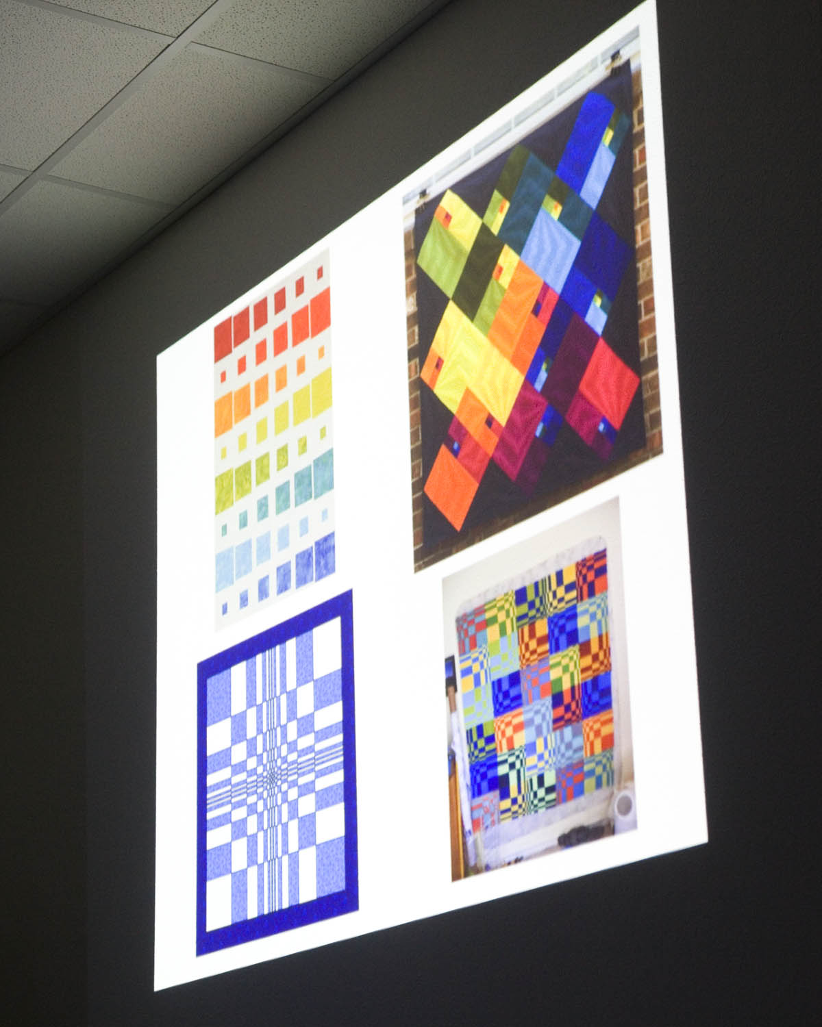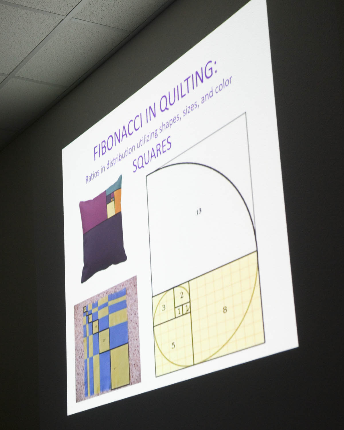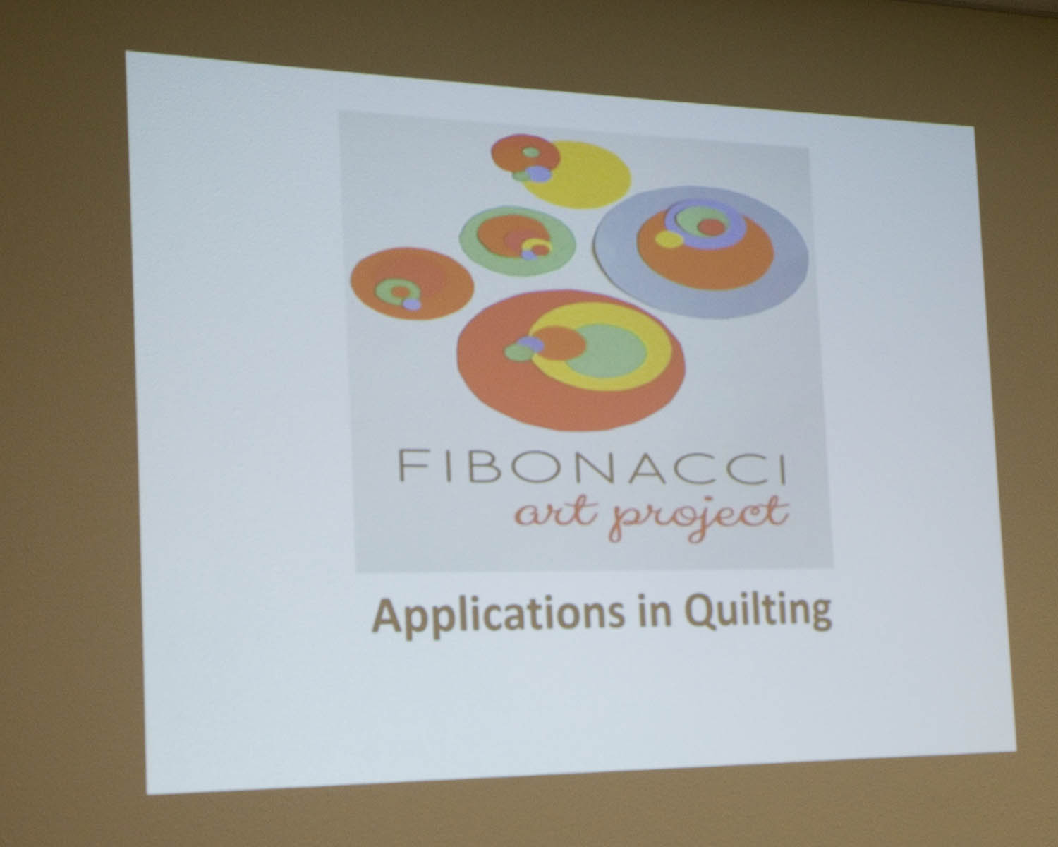 Karen Estep shared a wonderful program on Fibonacci and how we as quilters can use it in our quilt designs. Below are a few images from the very informative presentation. We even participated in using Fibonacci to design a quilt back layout at the end of the program. For more information you can also visit Karen Estep’s Pinterest page. https://www.pinterest.com/kcestep/fibonacci/