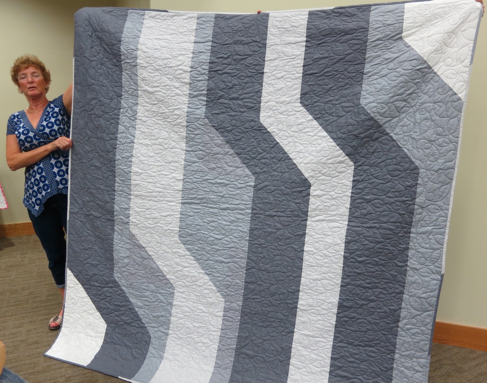 Becky showed a large minimalist quilt made from the book “Modern Quilts from the Blogging Universe.” It was longarm quilted.