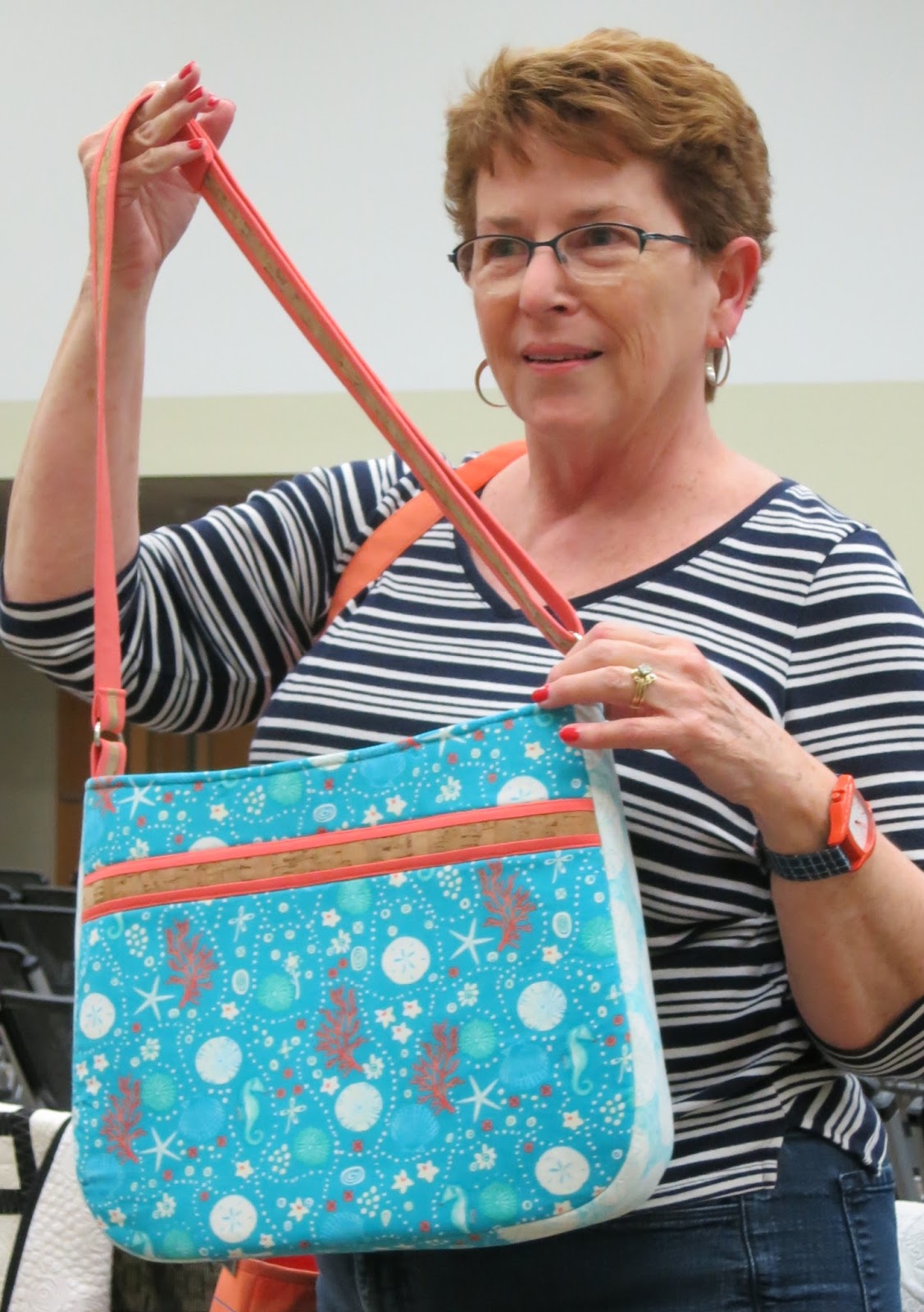 Lora continues to make bags. The aqua bag on the left includes strips of decorative cork!