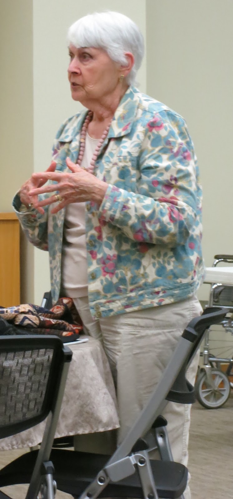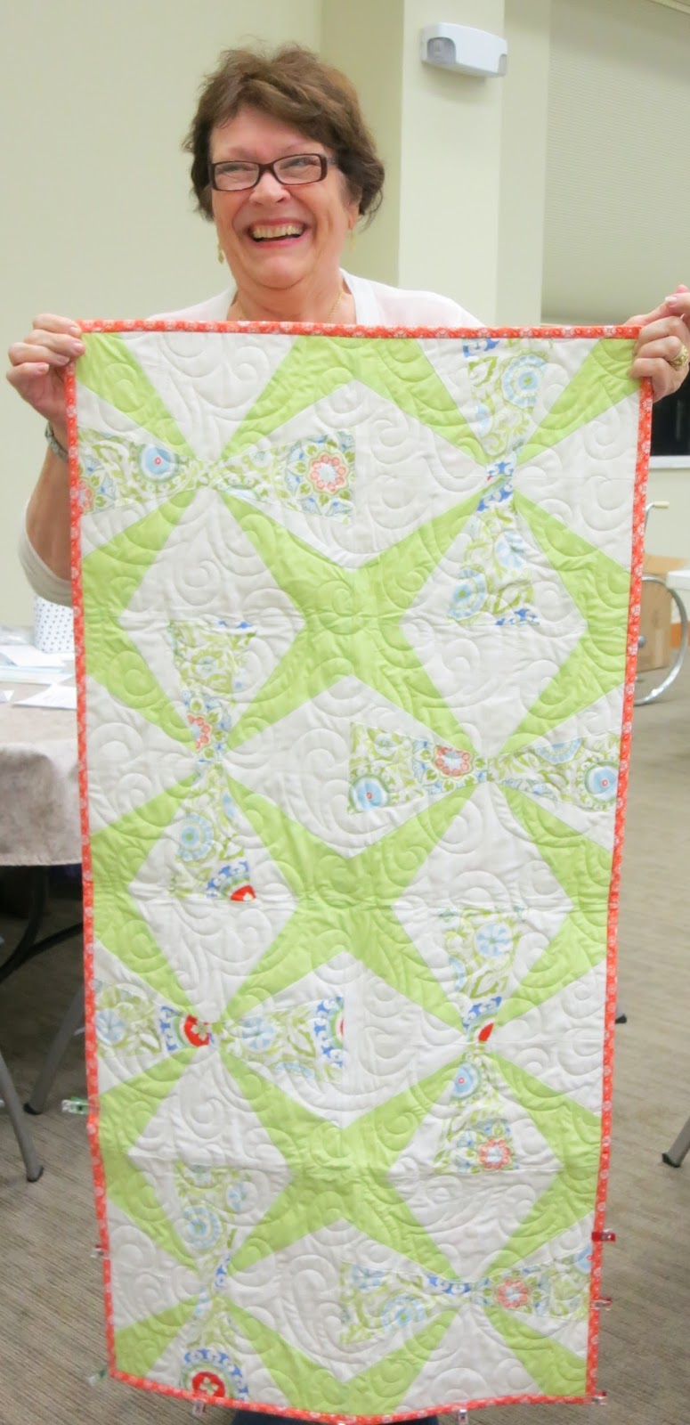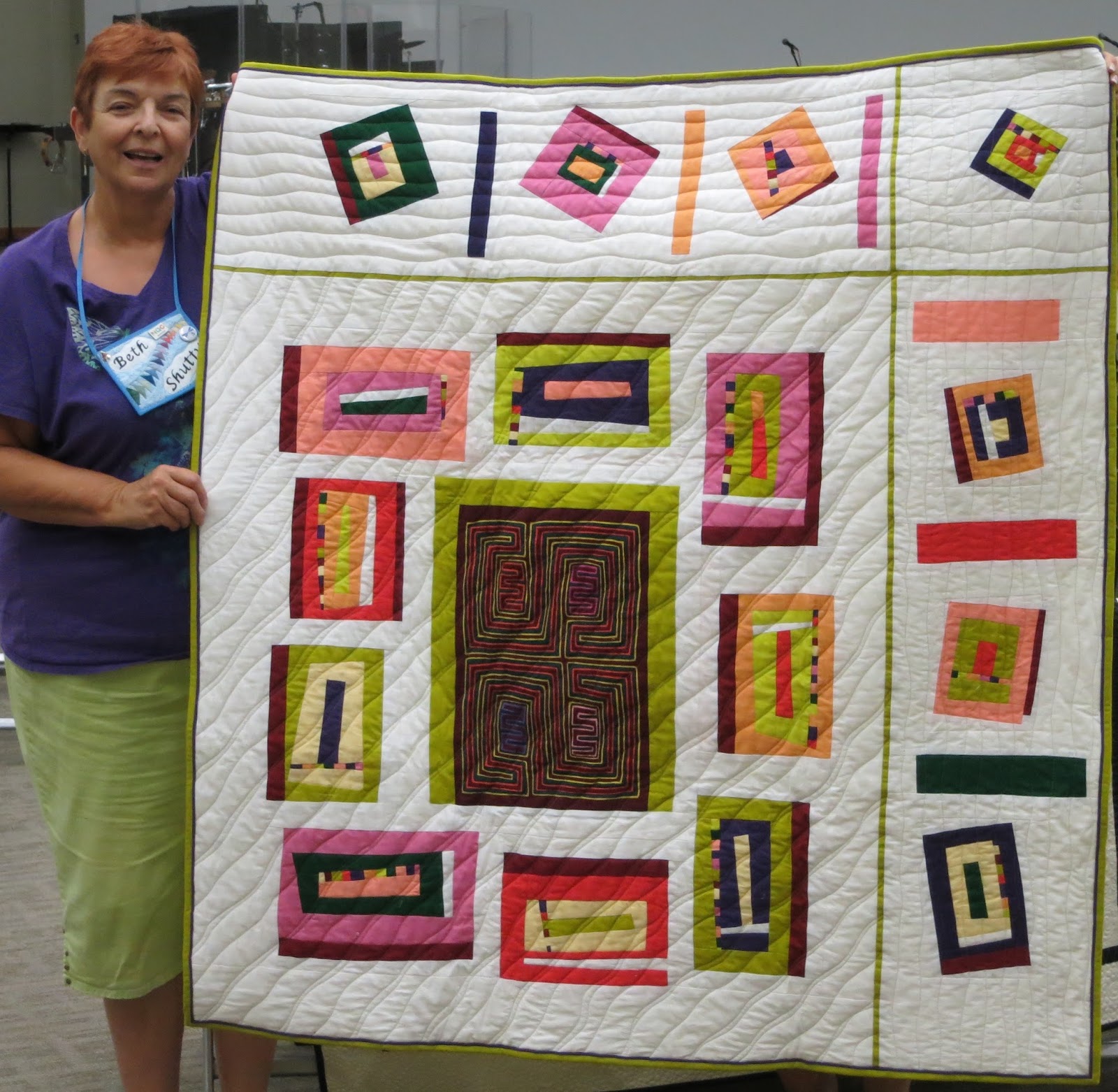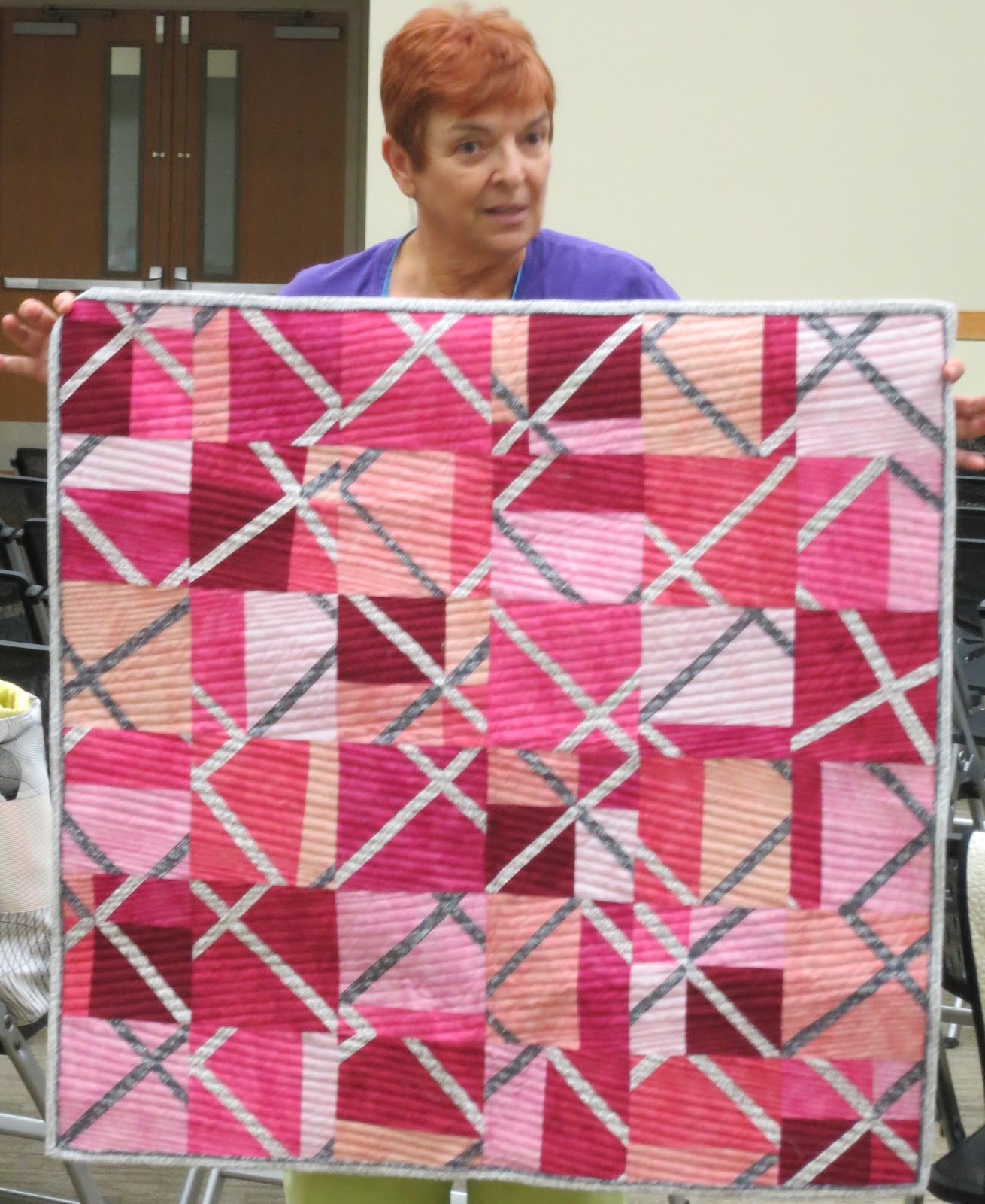 While showing the quilt above, Beth shared how she made piped binding for it, passing around pieces so everyone could see how it was done.