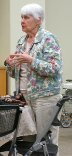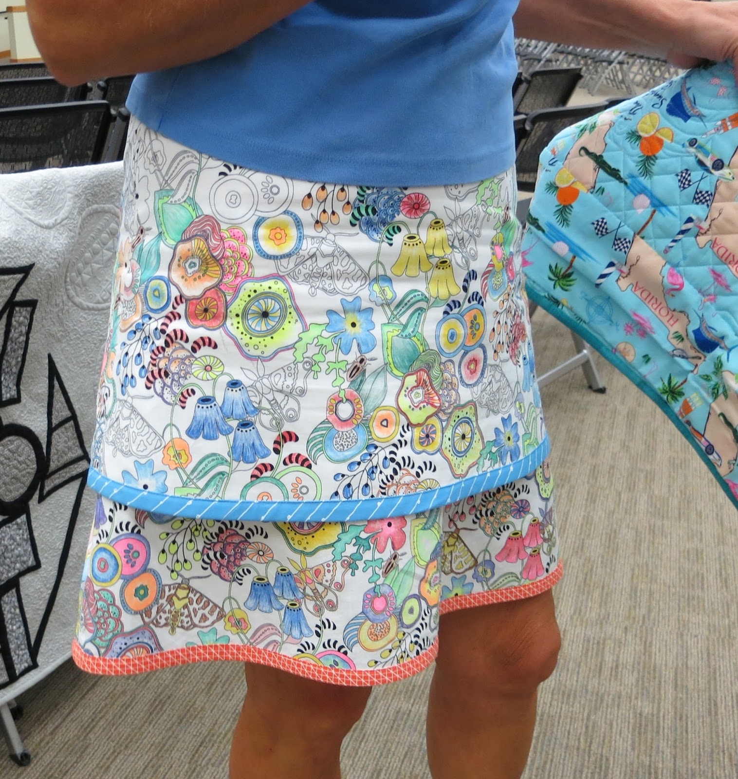 Linda H. wore her A-line skirt made with “Abacus,” an Alison Glass fabric that she colored with Tulip washable markers.