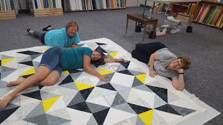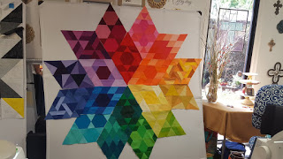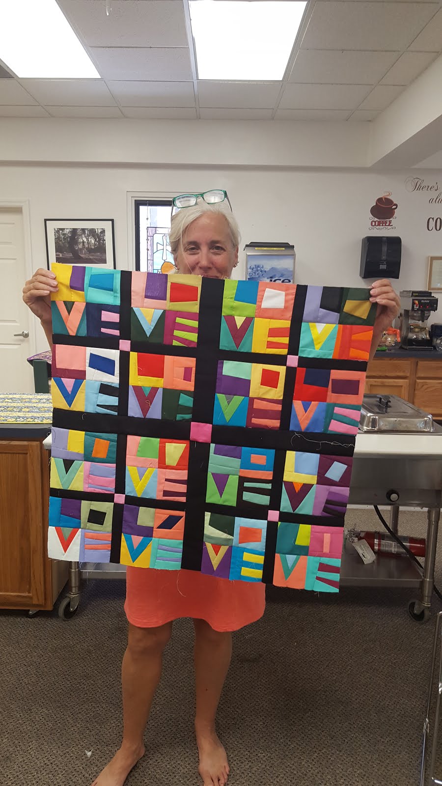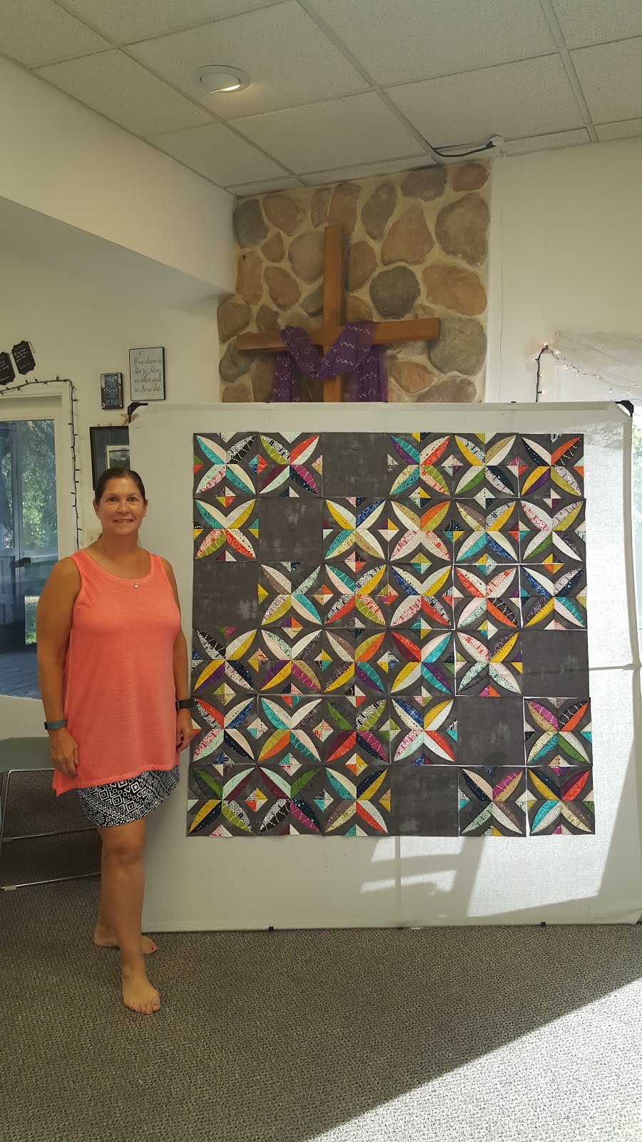 Ardie made this striking “plus quilt”. It will be fun to see how all that negative space is quilted!