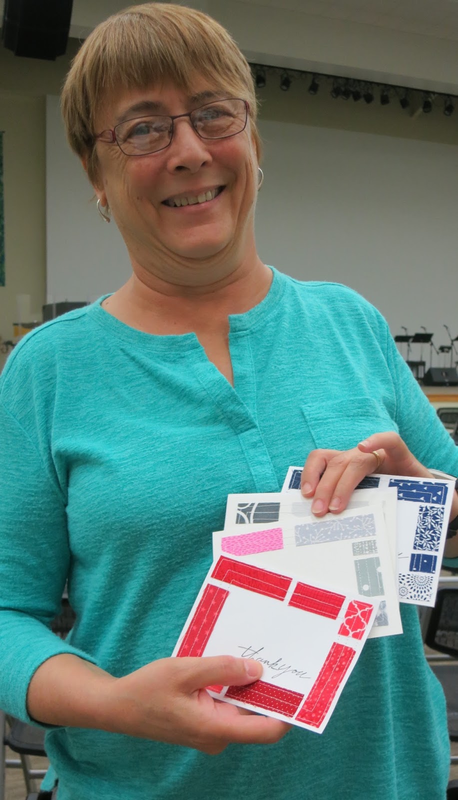 | She also made some of Amanda Jean’s note cards, using little fabric scraps to decorate them. |