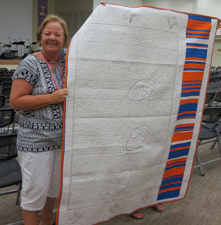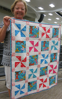 | Selina is working her way through the “No Scraps Left Behind” book by Amanda Jean Nyberg (our October 2 guest speaker) and made this “Nines” quilt. |