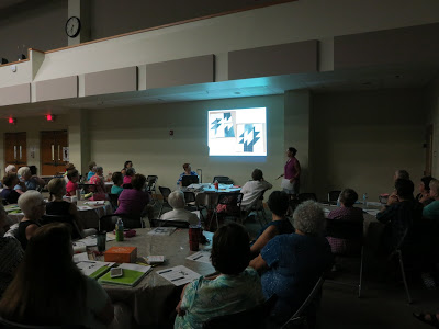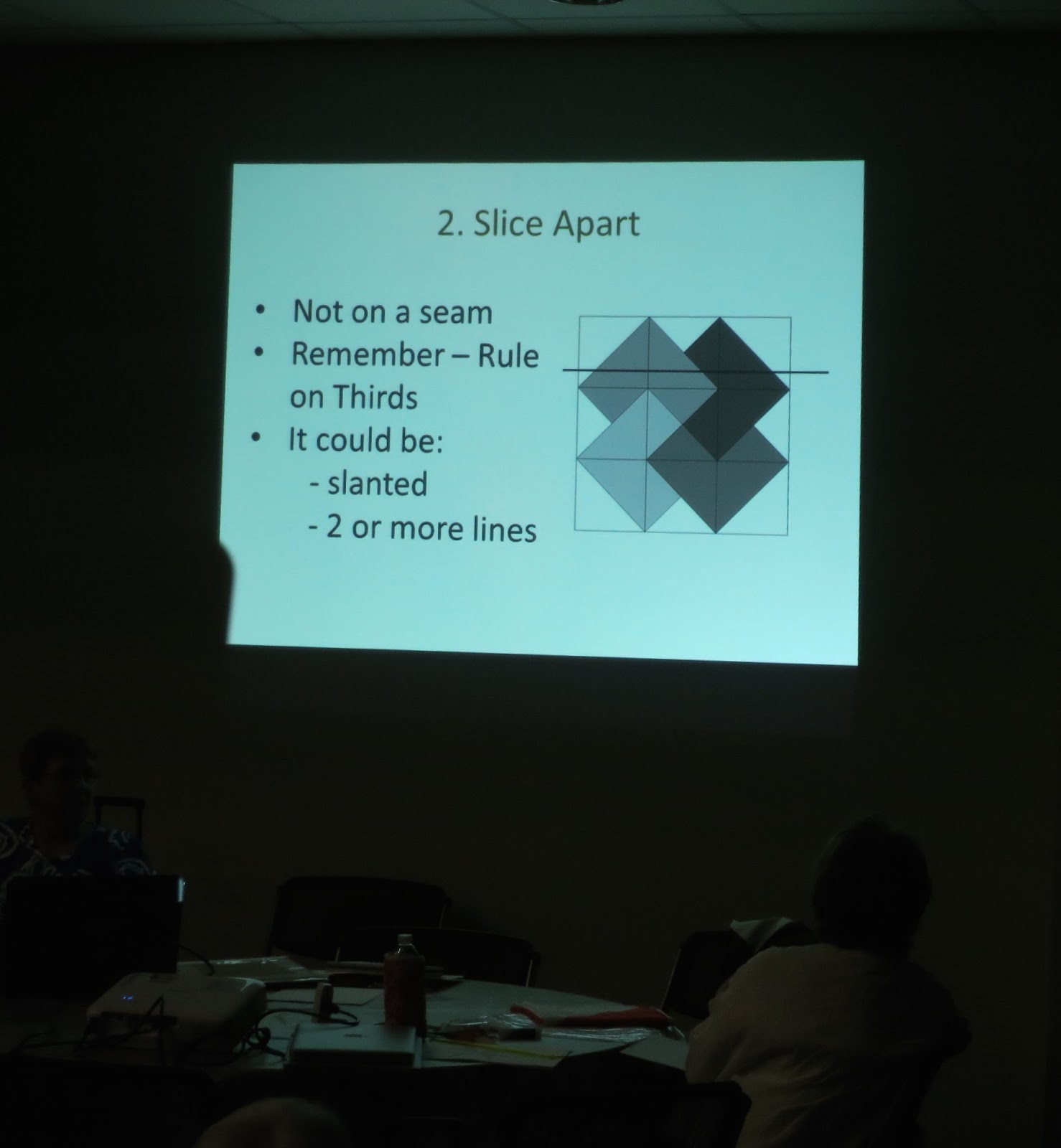 Presenting a PowerPoint show, and a few pieced examples, Beth and Debbie gave an overview of how to deconstruct a traditional quilt block and make it modern.