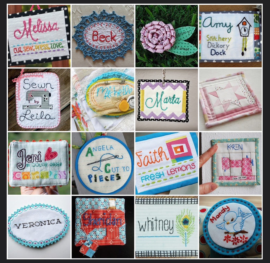 Our first challenge is to invite everyone to make and wear (to every meeting) a home-sewn name tag. You’ll find ideas on Pinterest, and a search on Flickr of “sewn name tags” turned up all these ideas HERE. It’s up to you whether you’d like to include your last name.