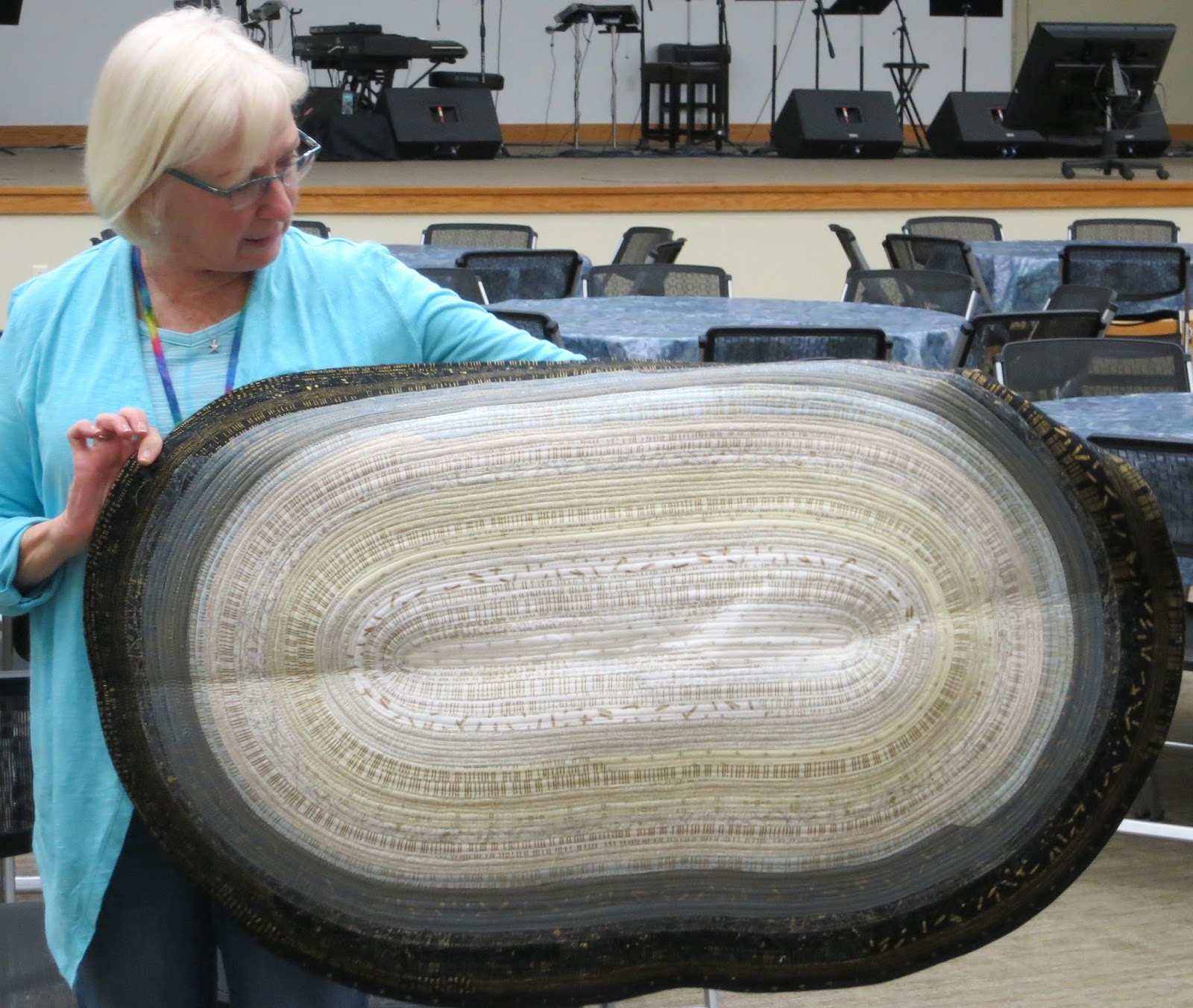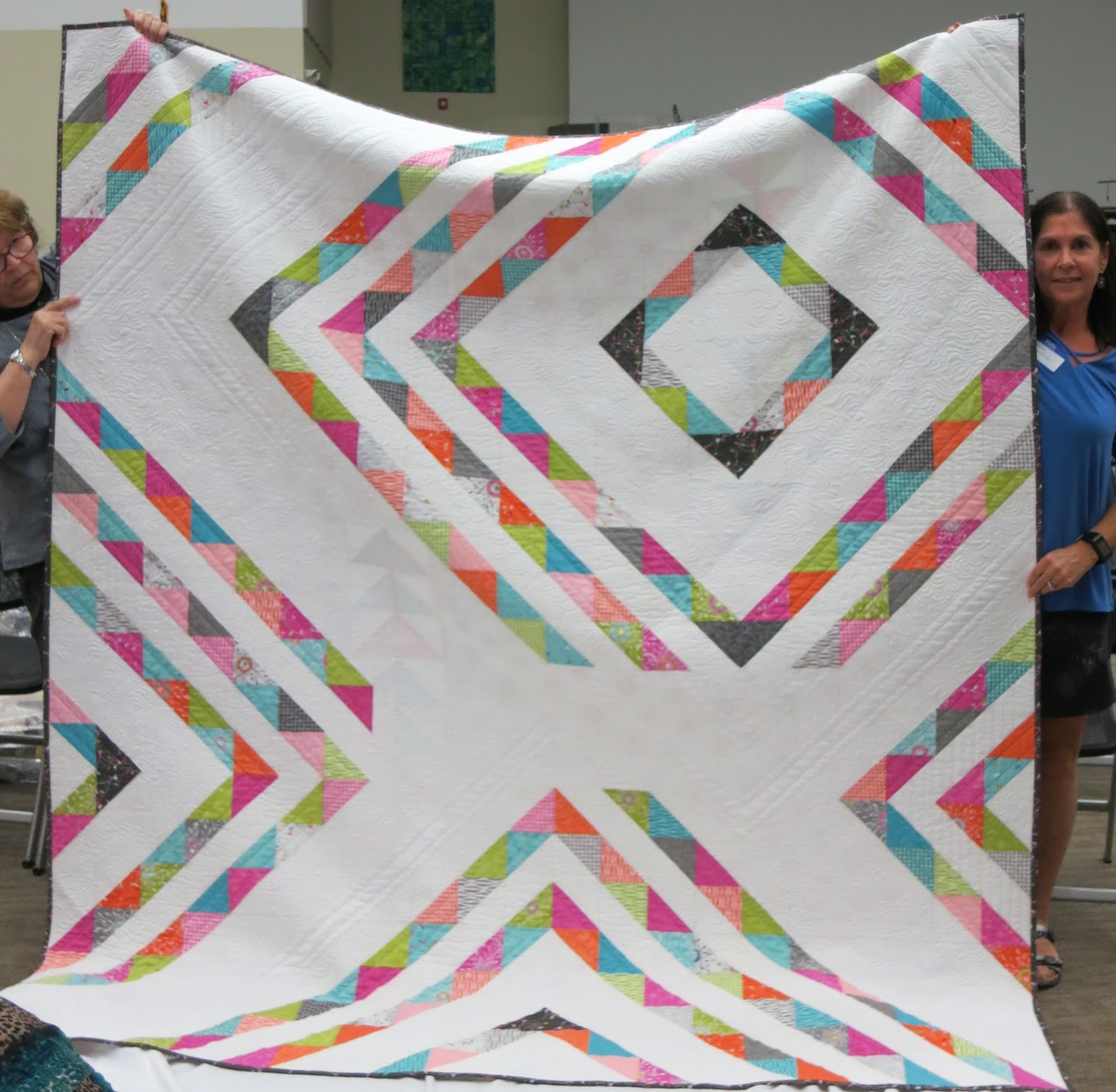 Susan (@sesquilter) and Debbie (@dbook1) showed “Line Dance,” an 82″ X 94″ quilt made by members of the Big Cypress Chapter of