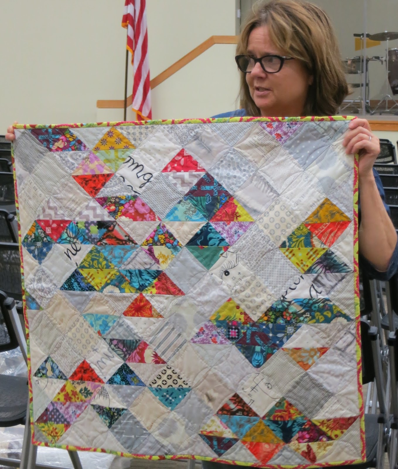 Nancy F. made up this small quilt using stashed fabrics and half-square triangles.