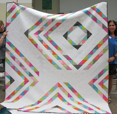 The evening’s program by Beth did not happen! Unfortunately, due to technical difficulties – a PC that would not “talk” to our projector – Beth was unable to give her Powerpoint presentation “Inspiration for Modern Quilt Designs.” However, not to worry!