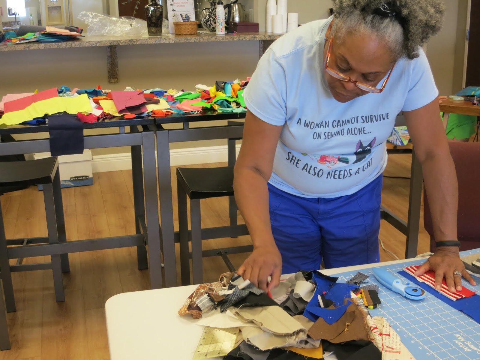 Every quilter in the room dug into scraps and began experimenting.