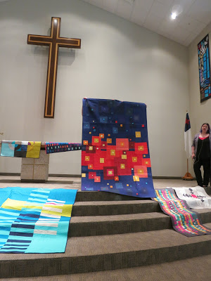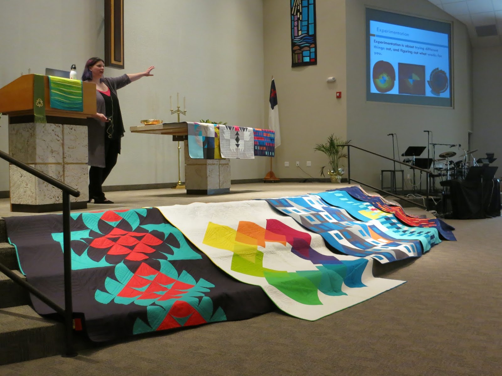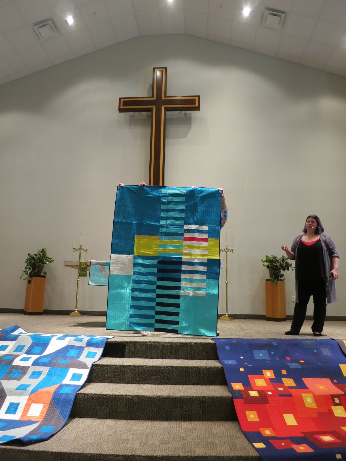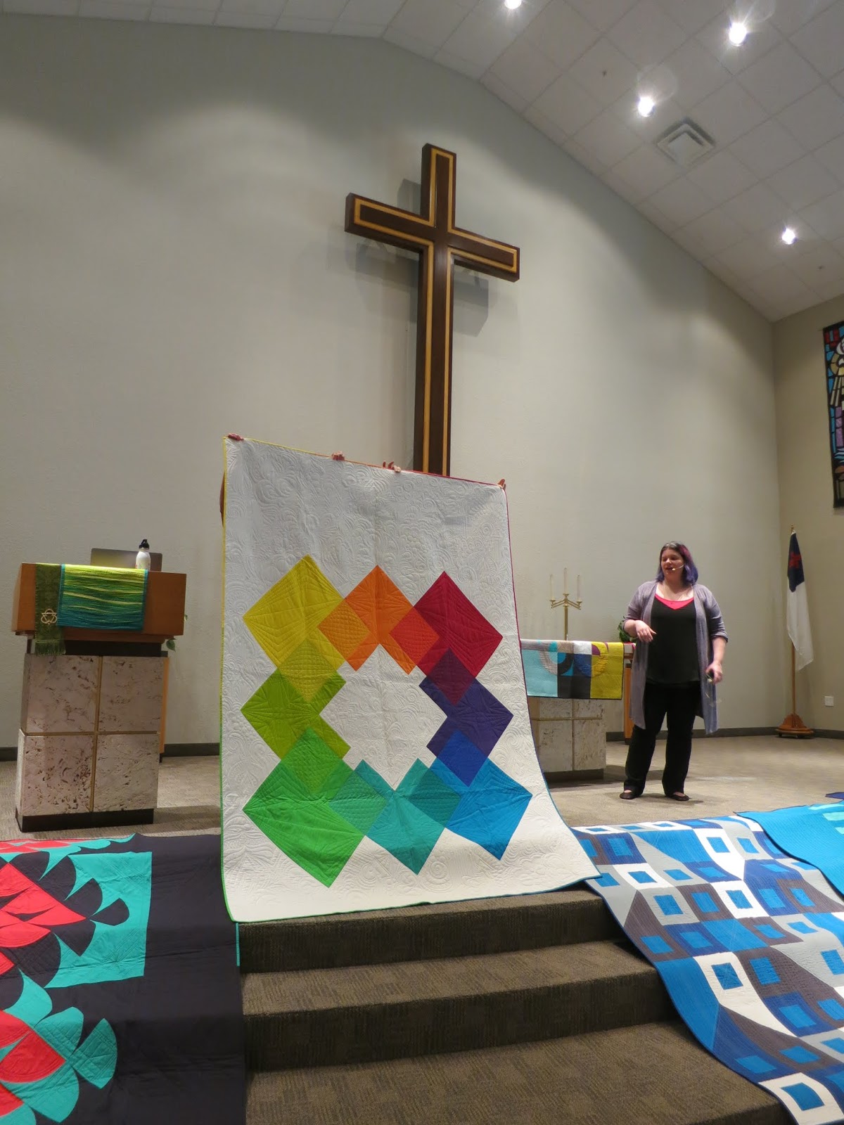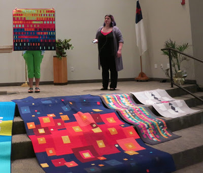 By 6 pm we were back at the church, setting up for Anne’s presentation, “You Are Creative!” and trunk show. We had a very nice turnout of 48 people, including some members of Amazing Grace Lutheran Church. Thank you to all our guest for coming!