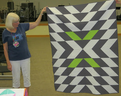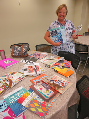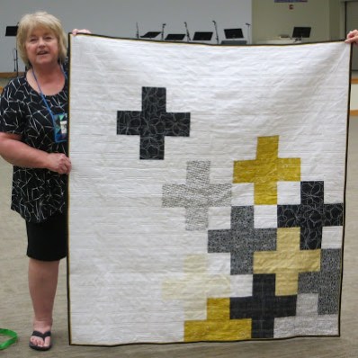 With ten new modern book titles added to our library, we expect our members to enjoy their options. Karen T. (pictured here), along with Cindy, are our two librarians who are happy to help you choose and check out books. Do take advantage of this great opportunity to learn more about modern quiltmaking, and make modern quilts!