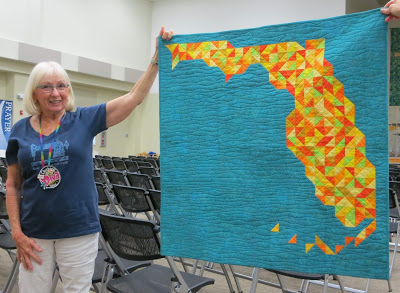 Dee (QuilterDee) has been a busy quilter and shared four finishes. This is her “Florida” quilt. The pattern is by member Linda (FlourishingPalms); and made from a DragonflyQuiltWorks kit from member Lora (LoraDouglas).