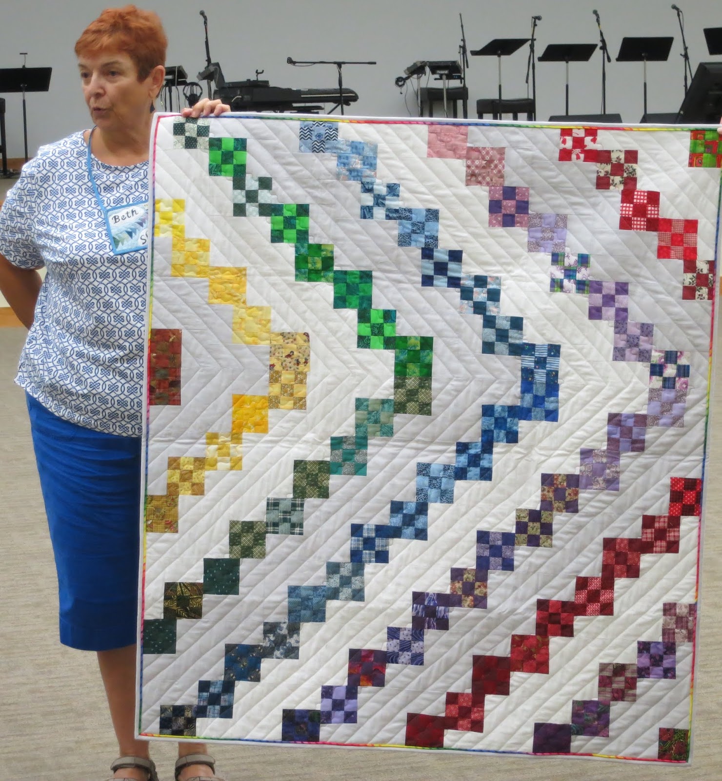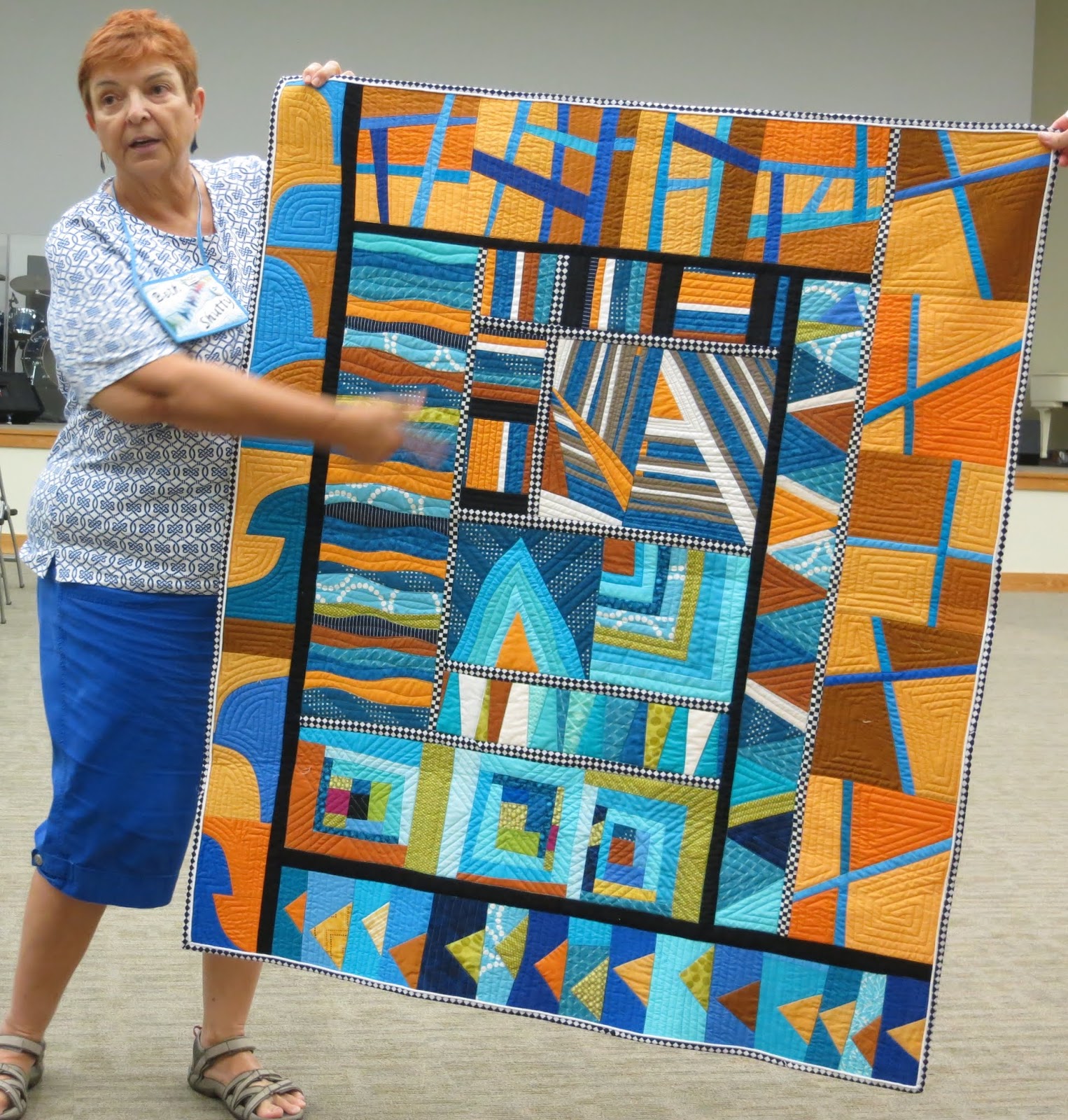 Beth made this “Improv Sampler” as she was sharing/teaching various improv techniques to another quilting group.