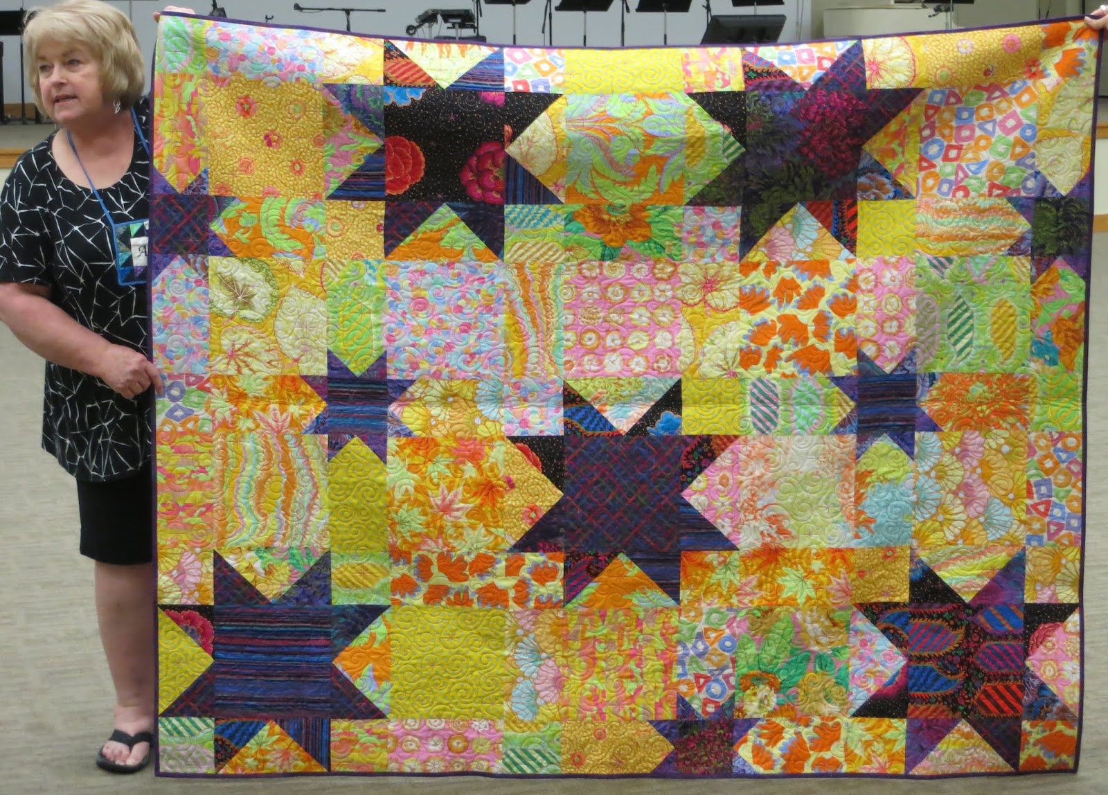 “Midnight Stars” is a Villa Rosa pattern that Ardie made using all Kaffe Fassett fabrics. All of Ardie’s quilts were quilted on her longarm.
